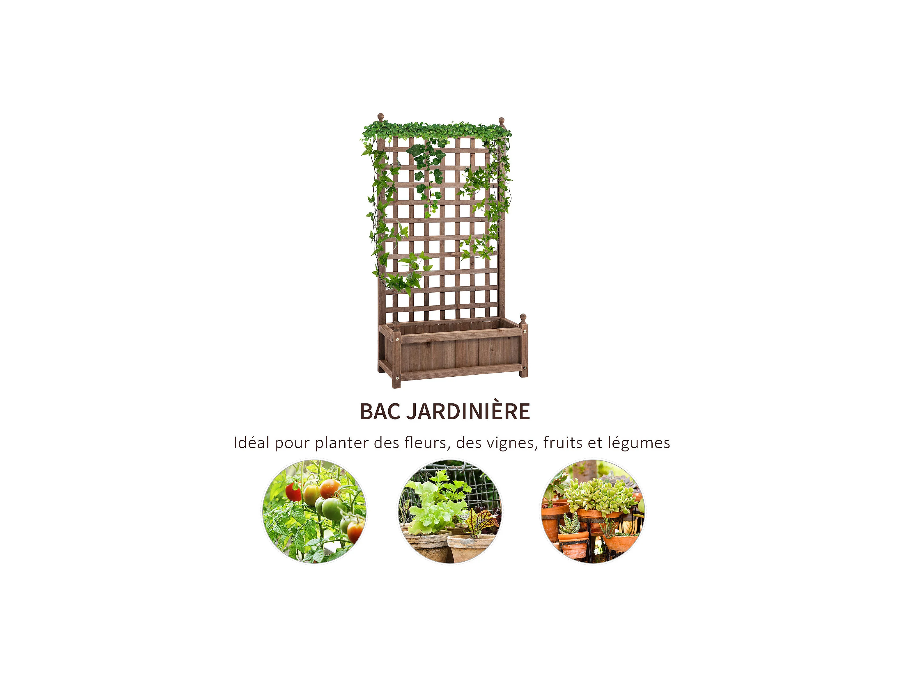 Jardinière avec treillis marron bois massif de sapin FR54161