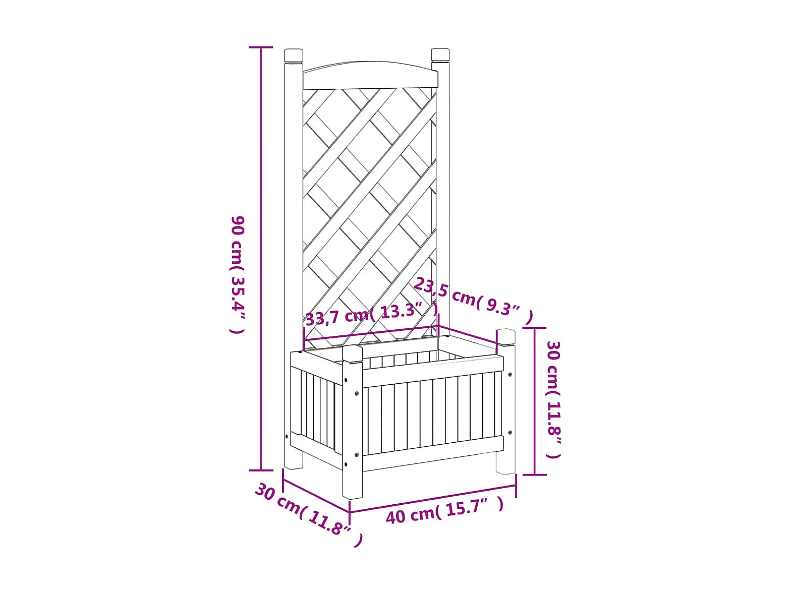 Jardinière en treillis 40x30x135 Bois de sapin massif