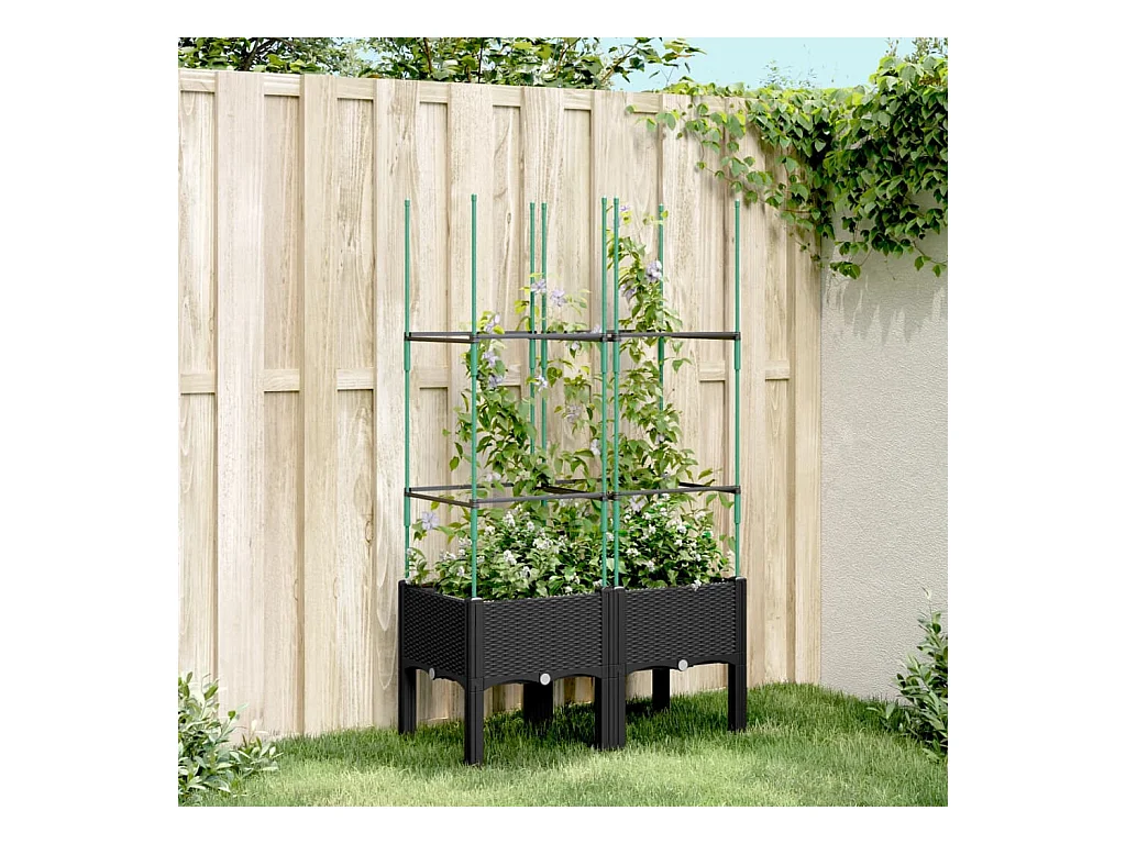 Jardinière avec treillis noir 40x40x142,5 cm PP