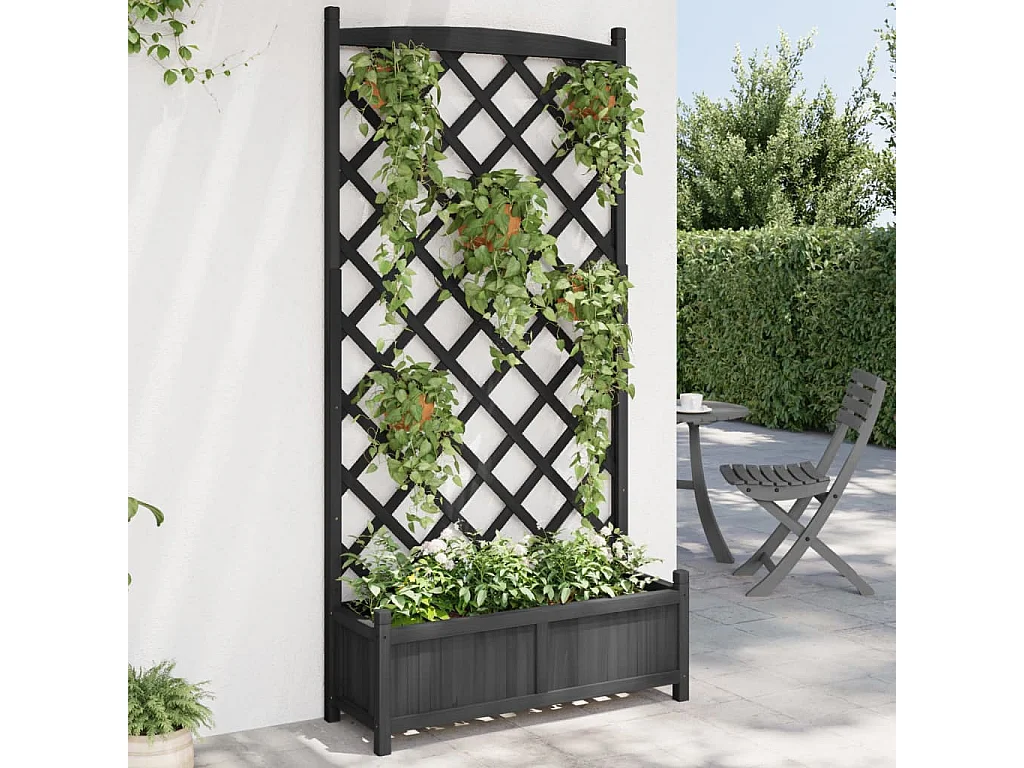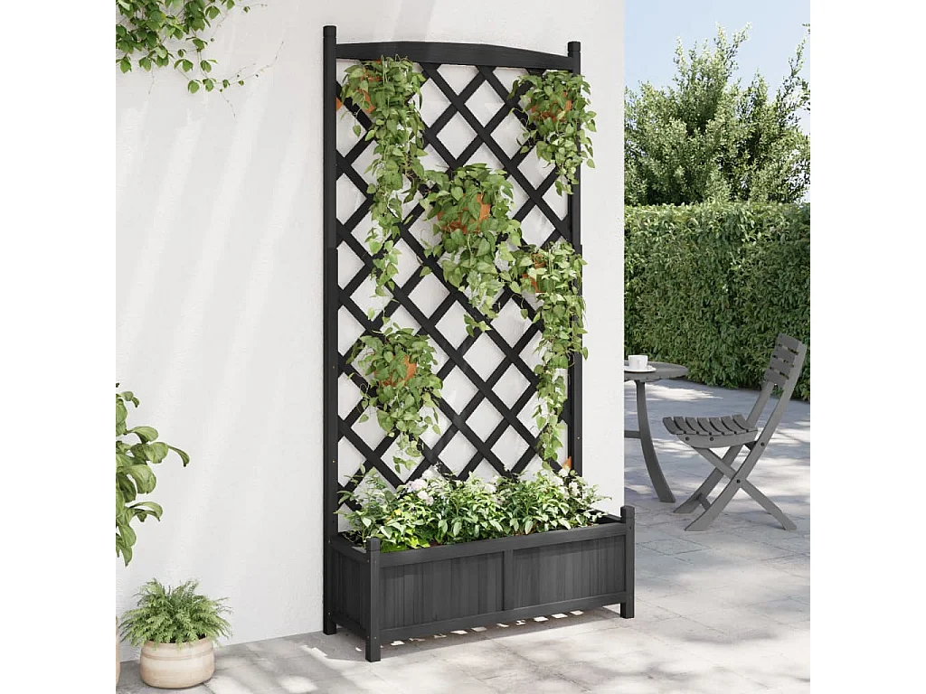 Jardinière avec treillis noir bois massif de sapin