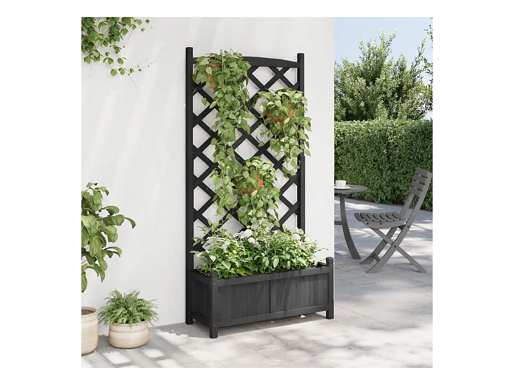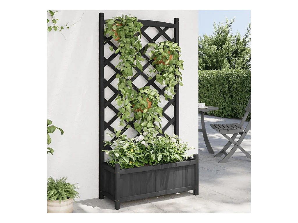 Jardinière avec treillis noir bois massif de sapin FR36379