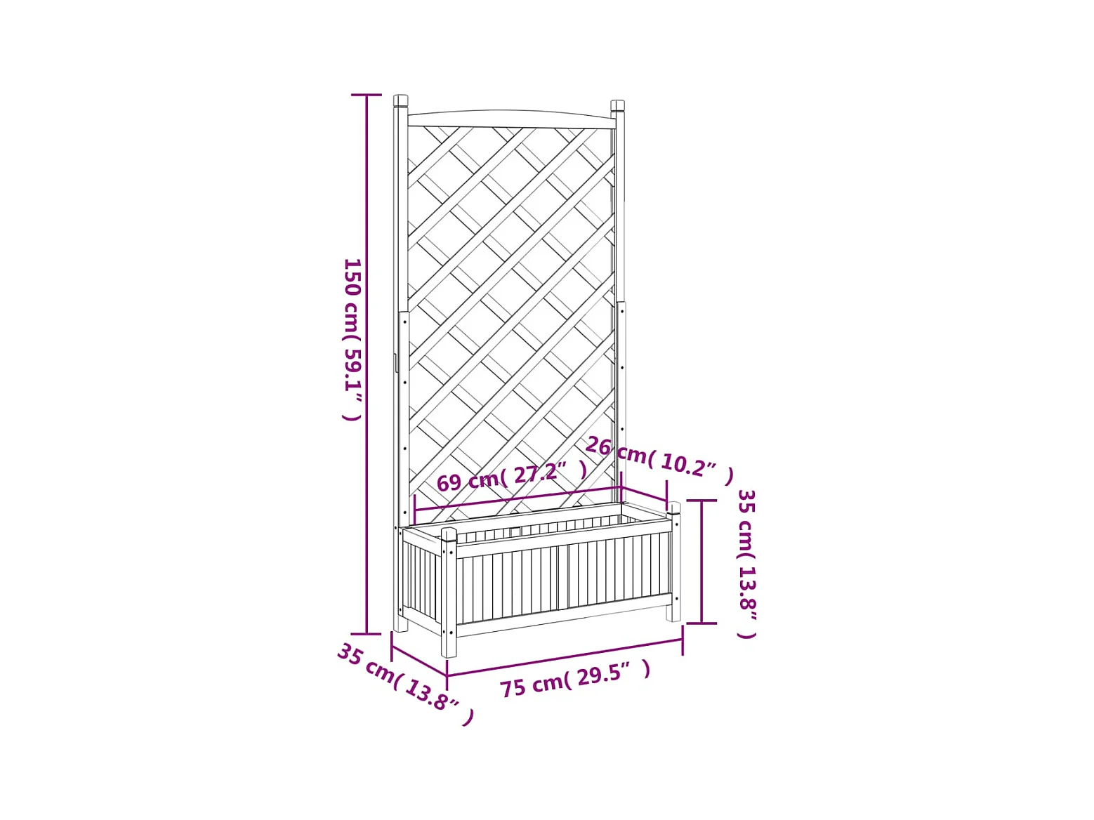 Jardinière avec treillis noir bois massif de sapin FR76624