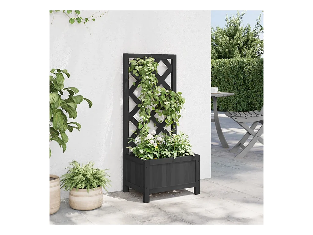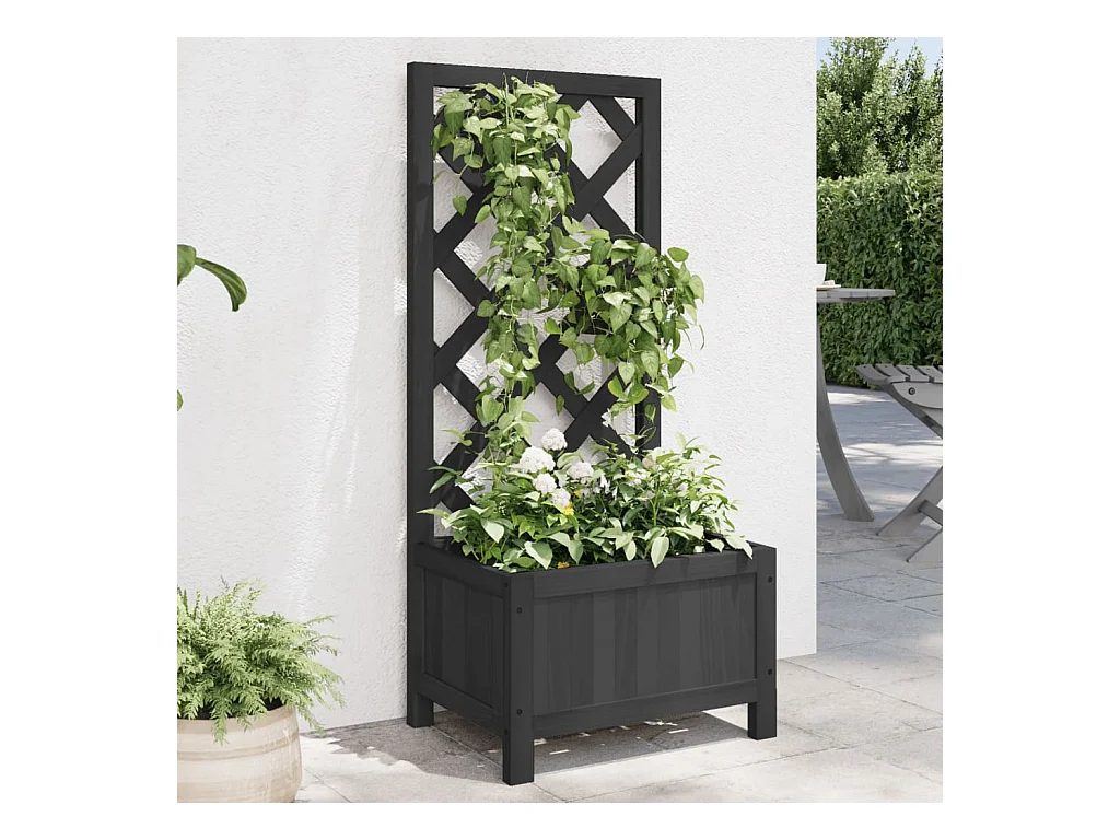 Jardinière avec treillis noir bois massif de sapin FR58394