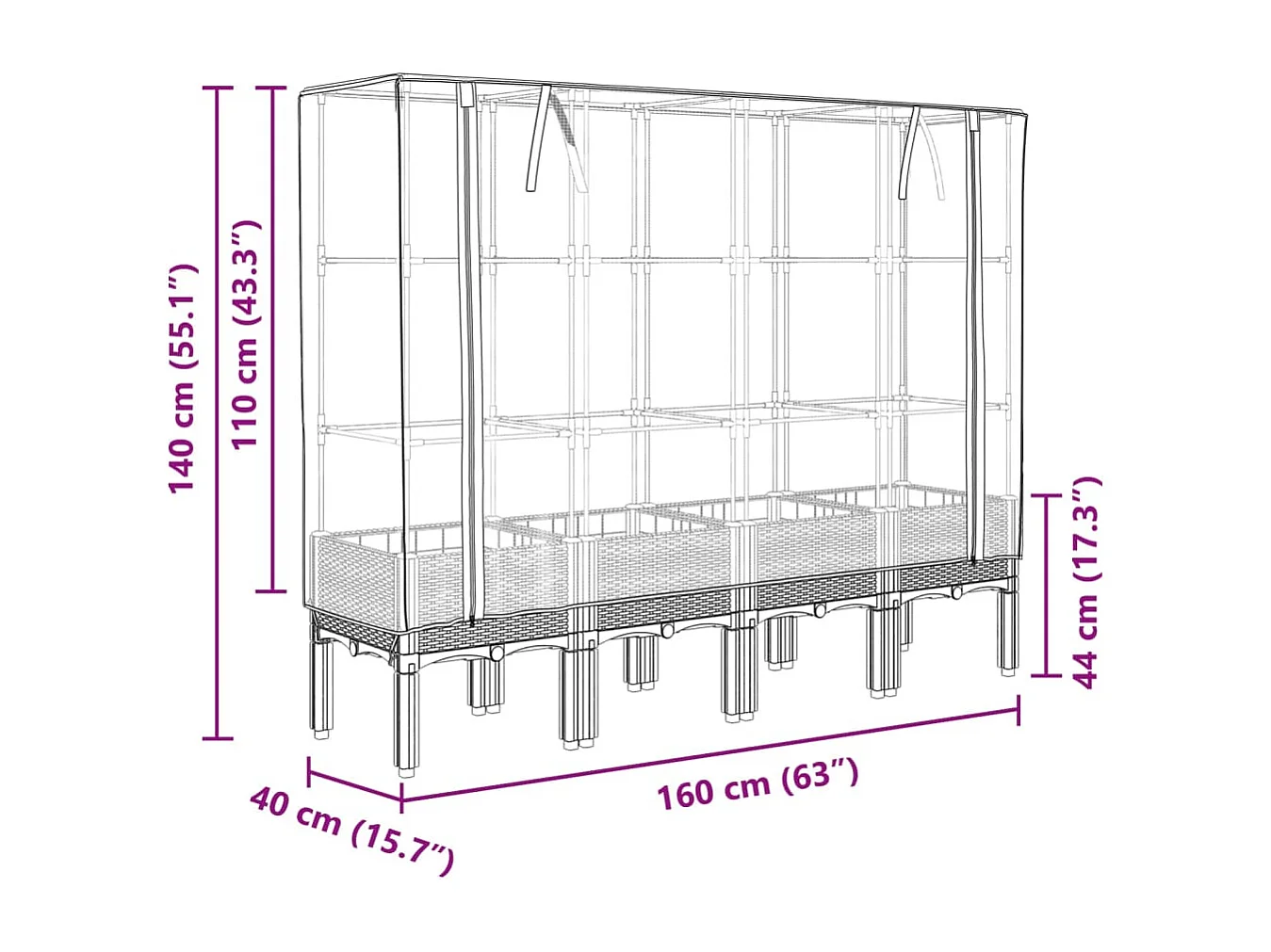 Jardinière bac lit surélevé grise 160 x 40 x 140 cm 02_0038761