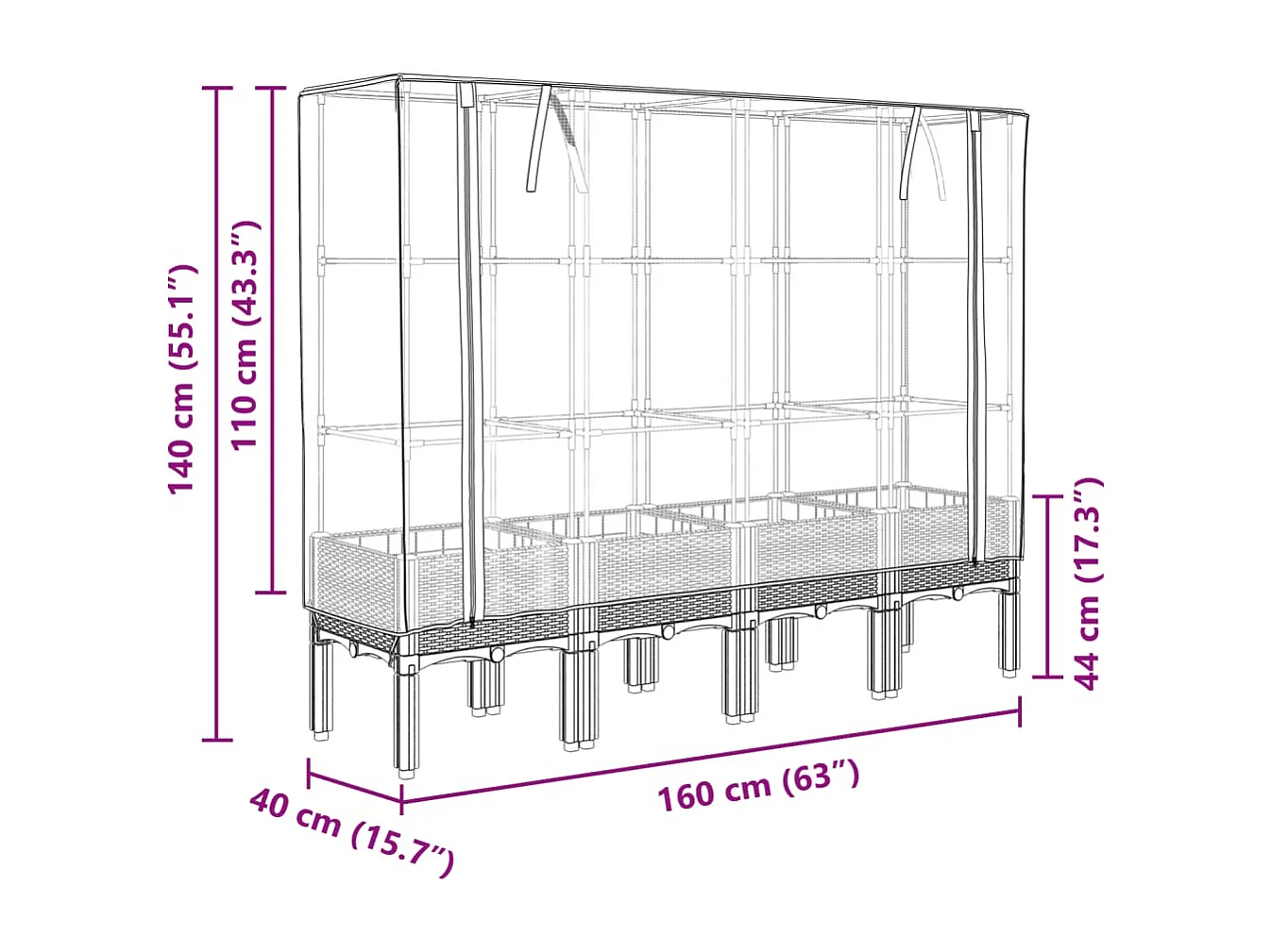 Jardinière bac lit surélevé marron 160 x 40 x 140 cm 02_0038757