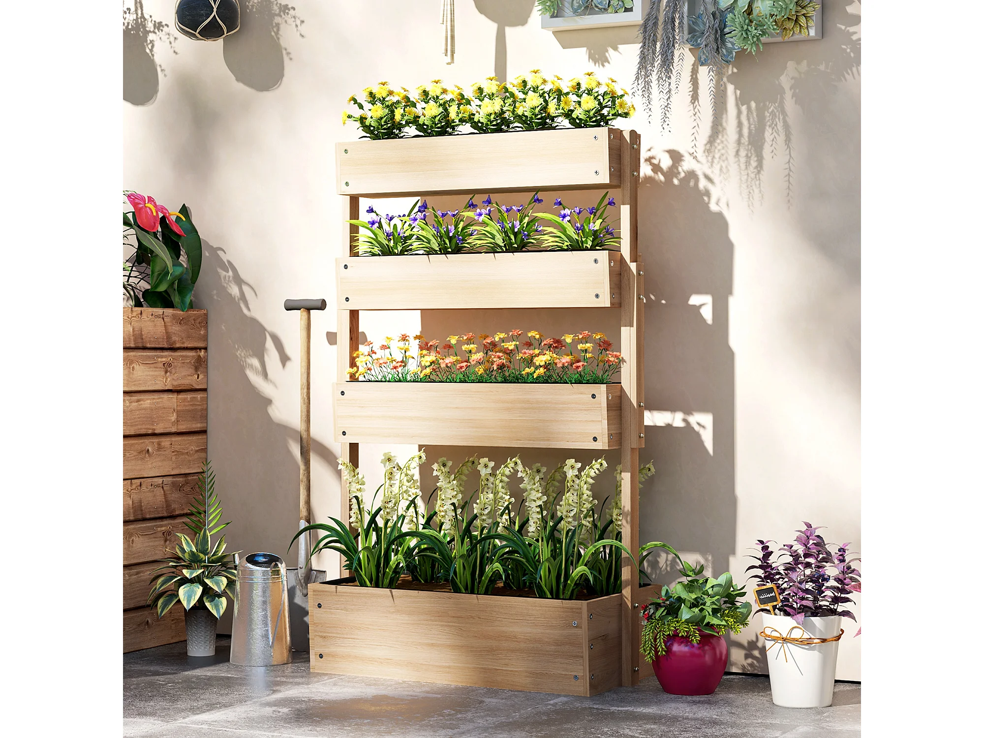 Jardinière bois 4 niveaux - inserts d'irrigation, feutres de drainage - dim. 88 x 45 x 140 cm - bois sapin pré-huilé