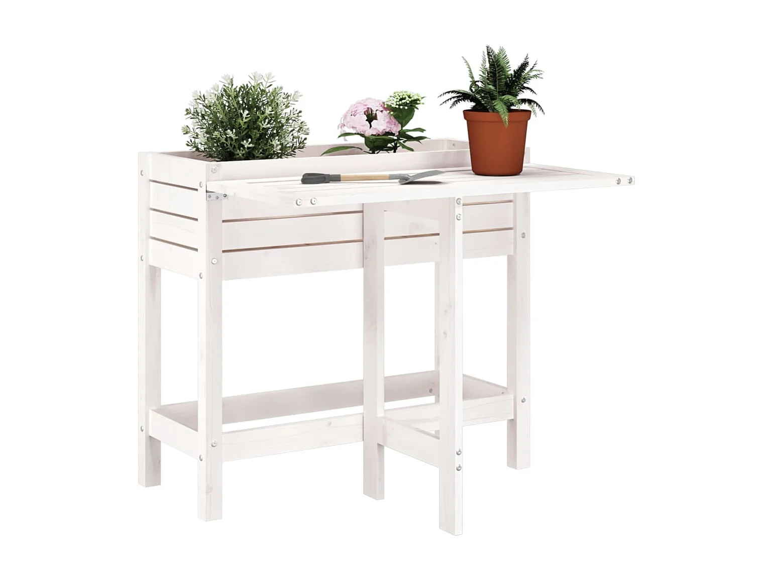 Jardinière de jardin avec plateau pliant blanc bois pin massif