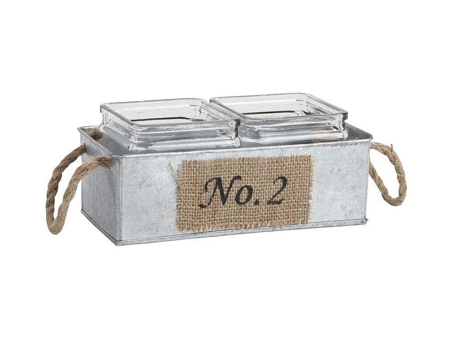 Jardinière en zinc avec pots en verre 24 cm