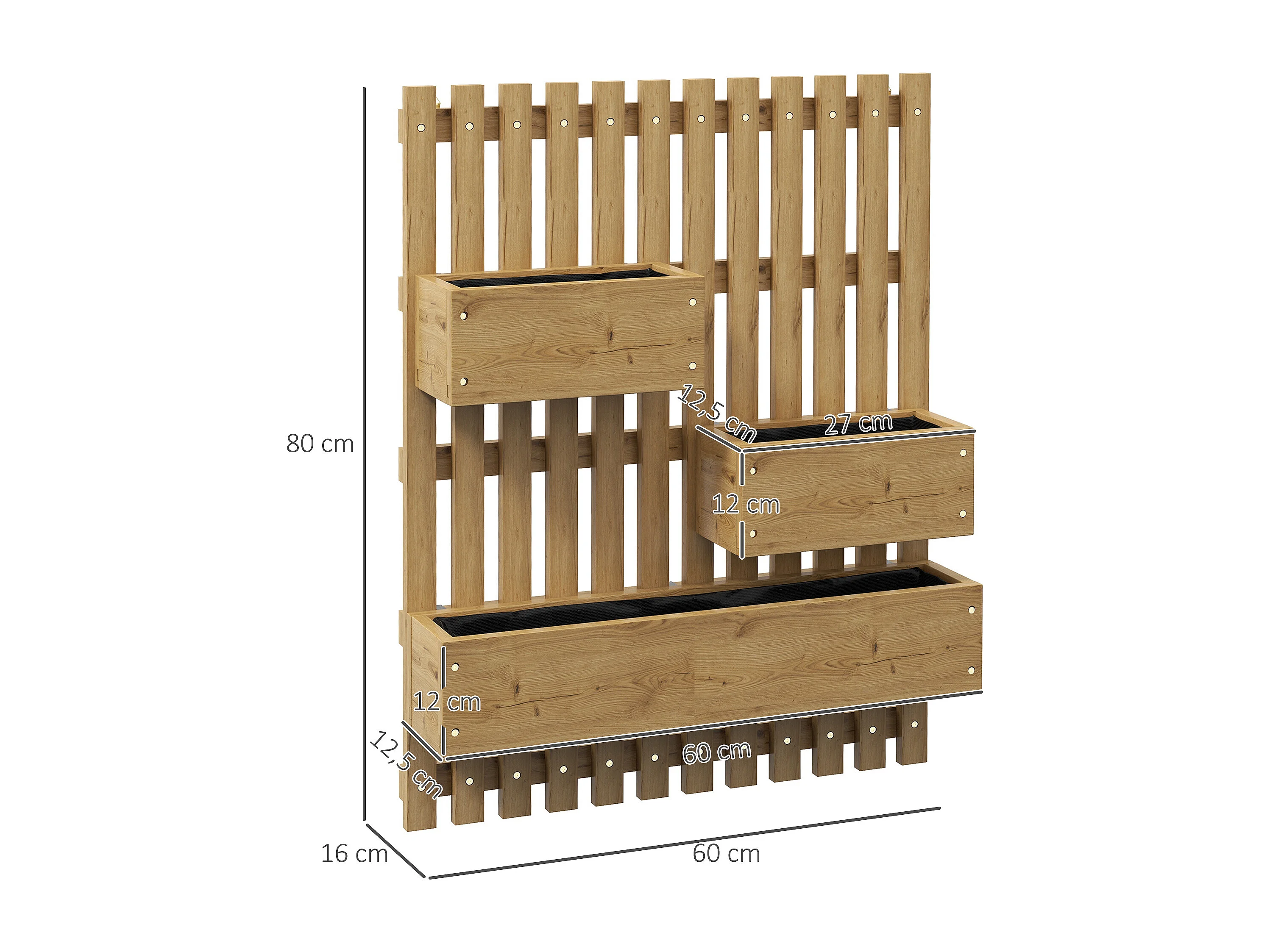 Jardinière murale avec treillis - lot de 3 jardinières murales - dim. 60L x 16l x 80H cm - bois de sapin pré-huilé