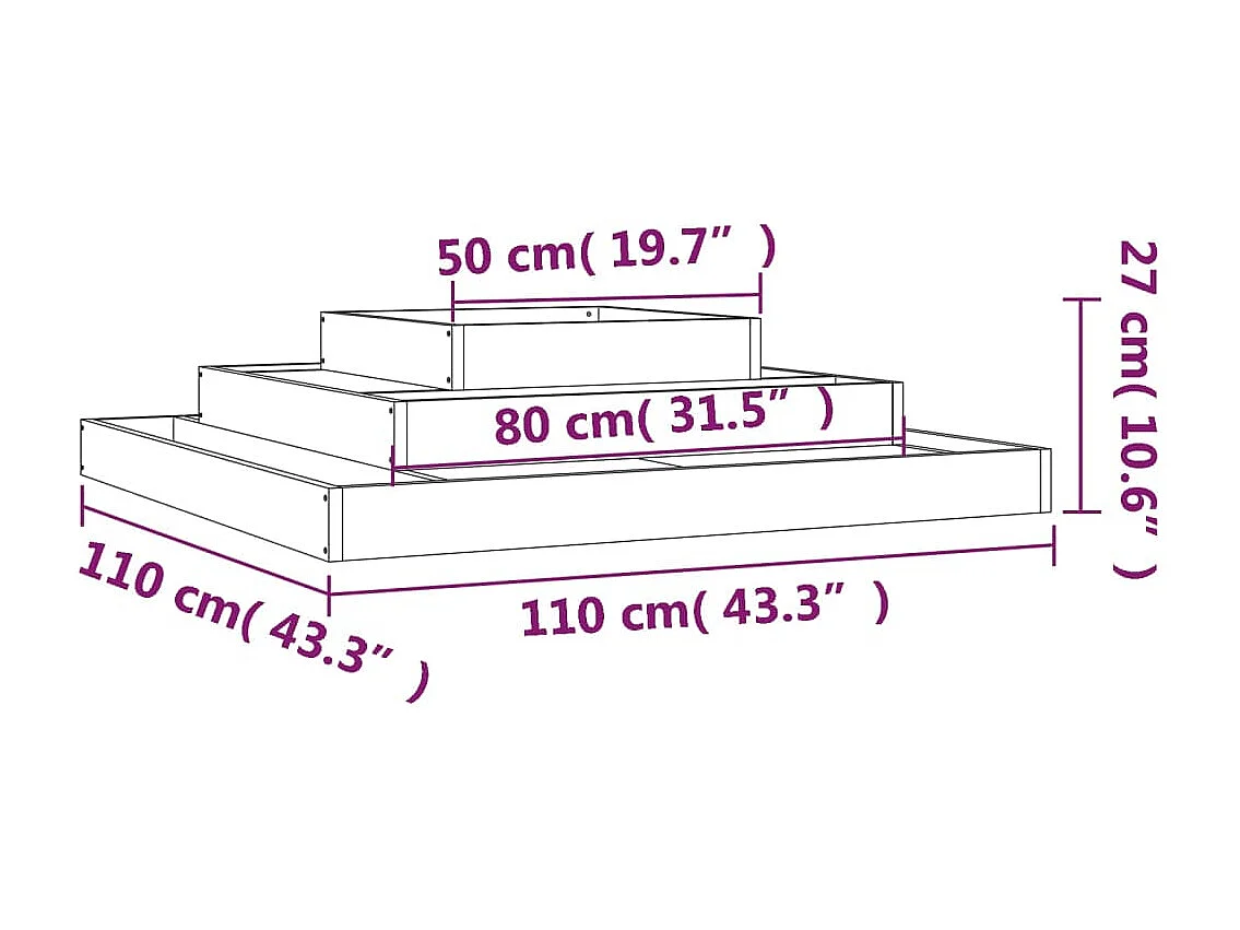 Jardinière Noir 110x110x27 Bois massif de pin