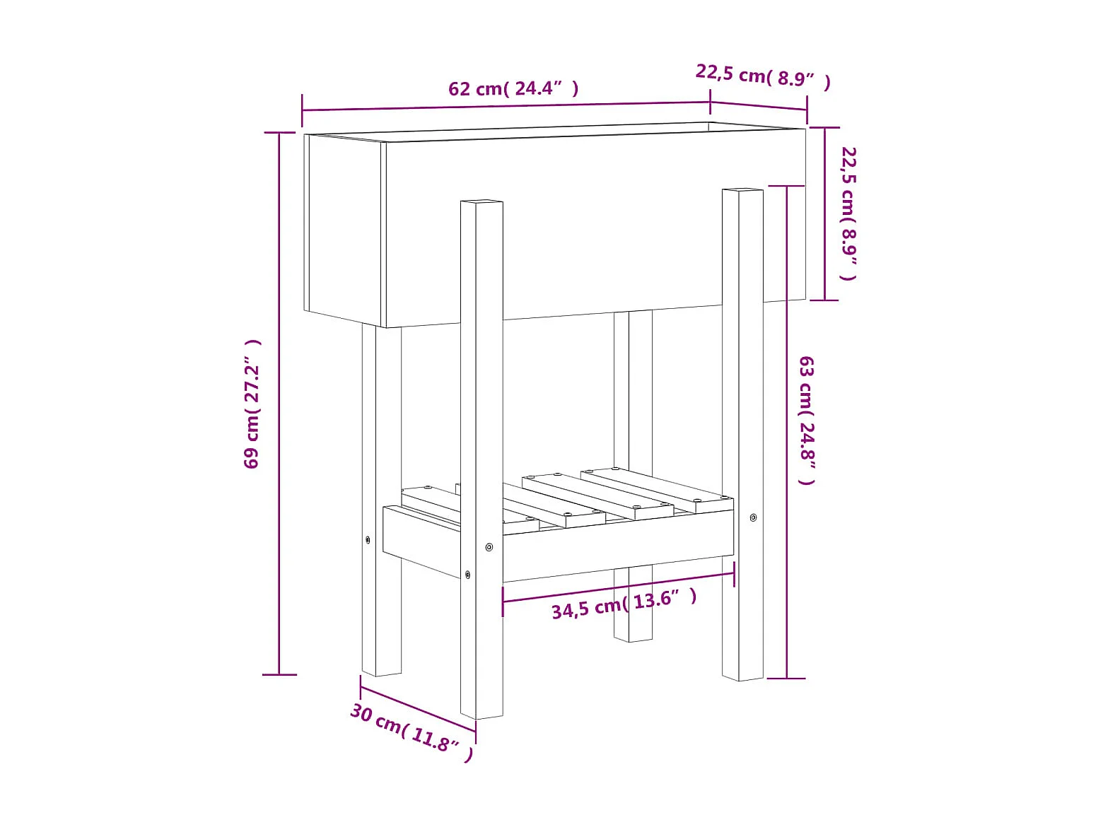 Jardinière noir 62x30x69 bois massif de pin