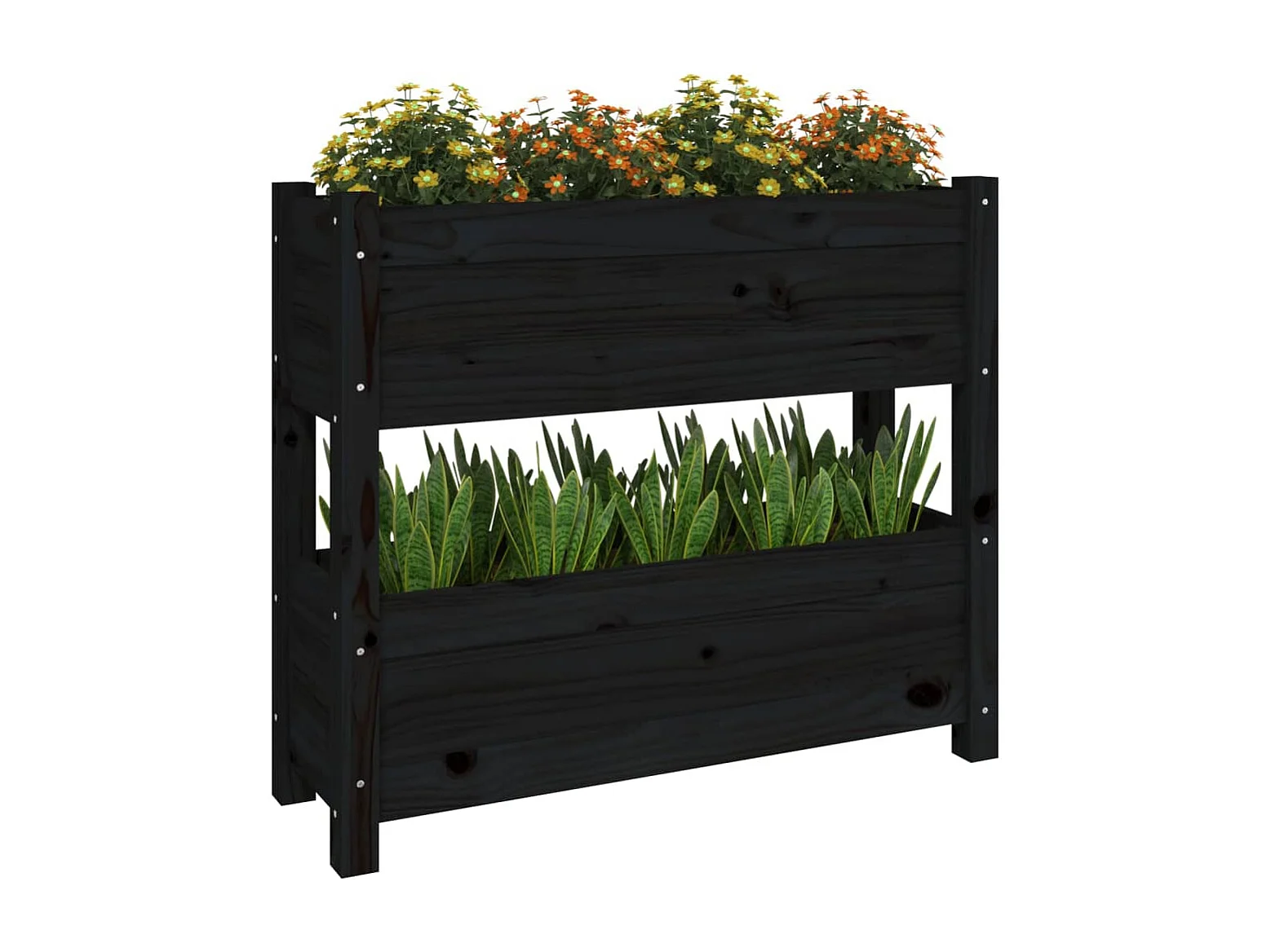 Jardinière Noir 112x25x104,5 Bois massif de pin