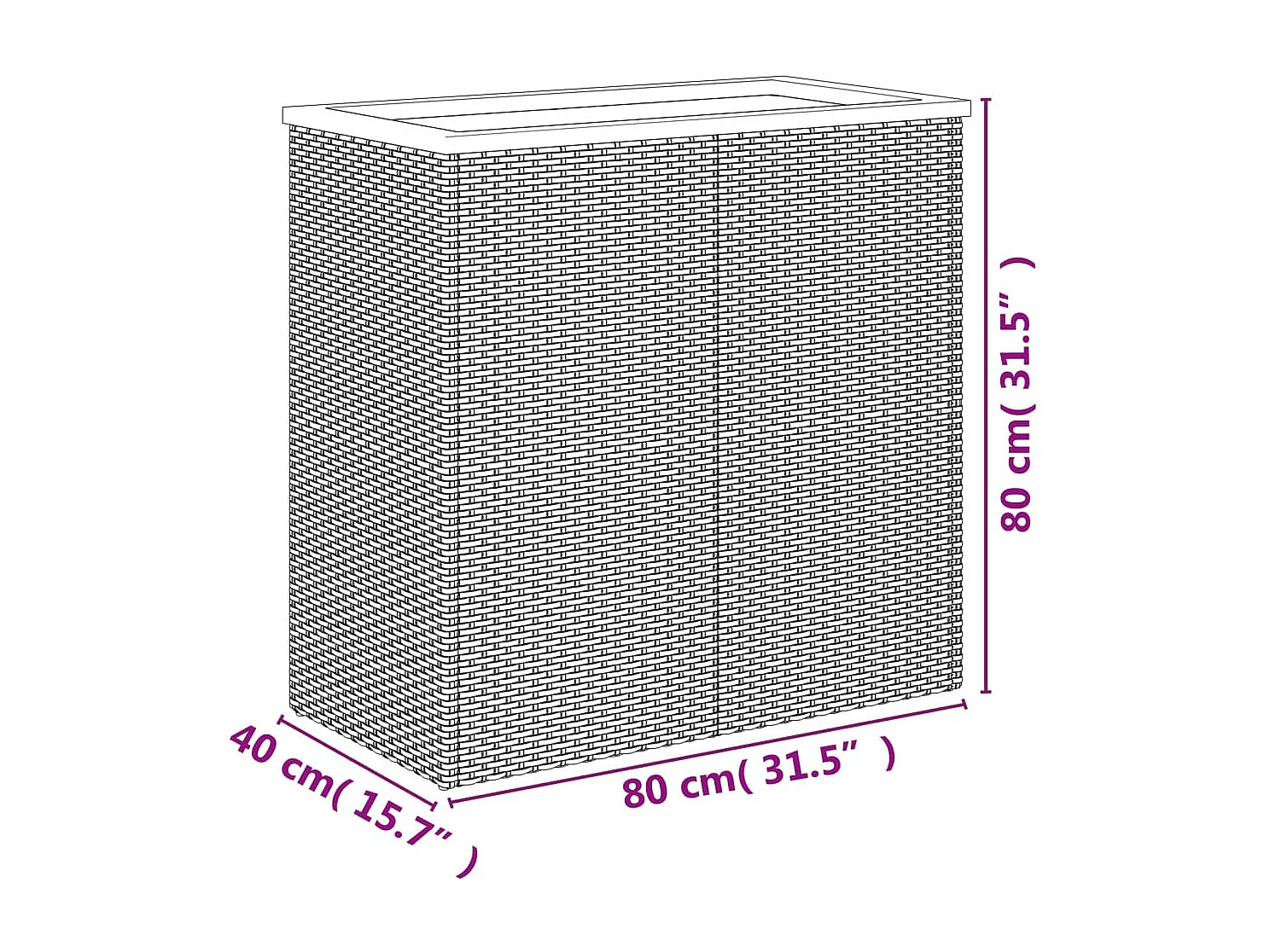 Jardinière noir 80x40x80 cm résine tressée FR39036