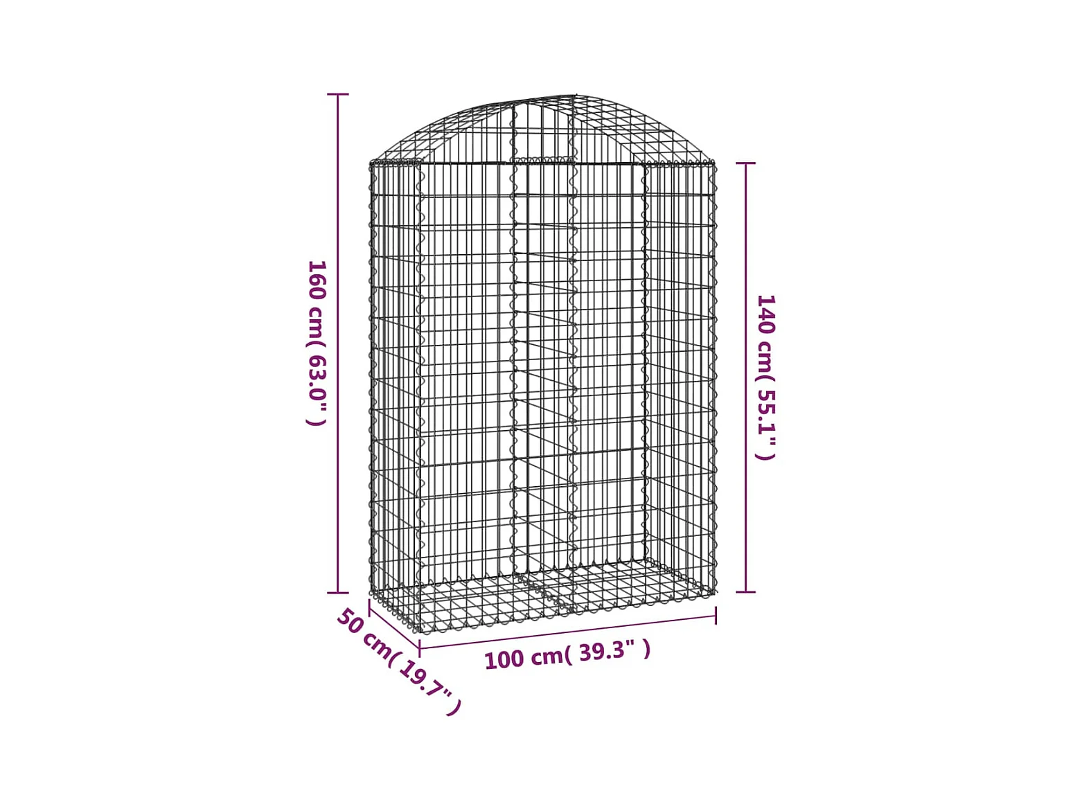 Panier de gabions arqué 100x50x200/220 cm Fer galvanisé WVGQ4280