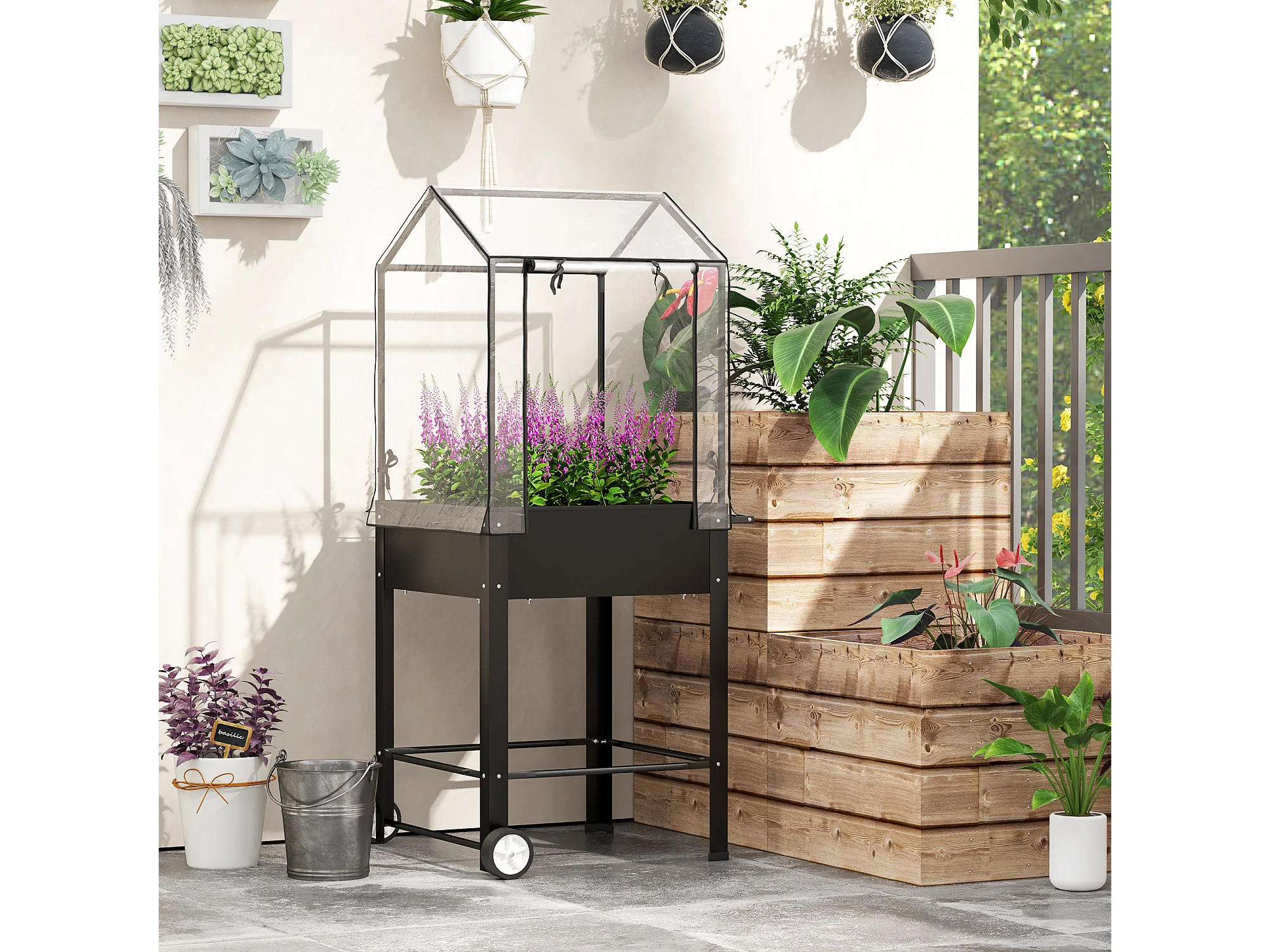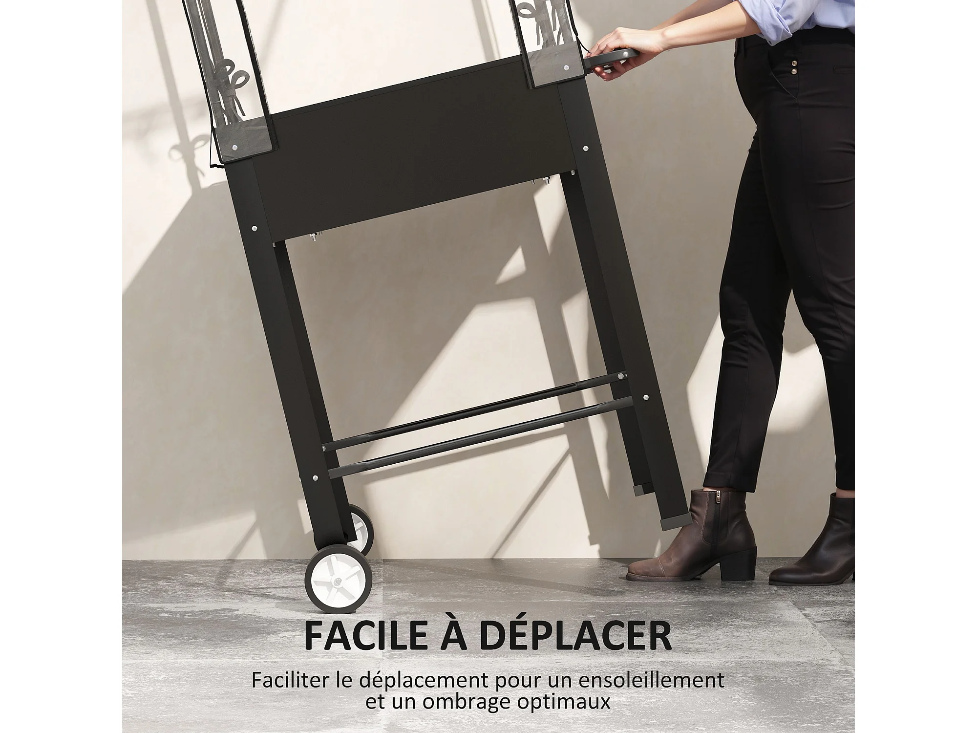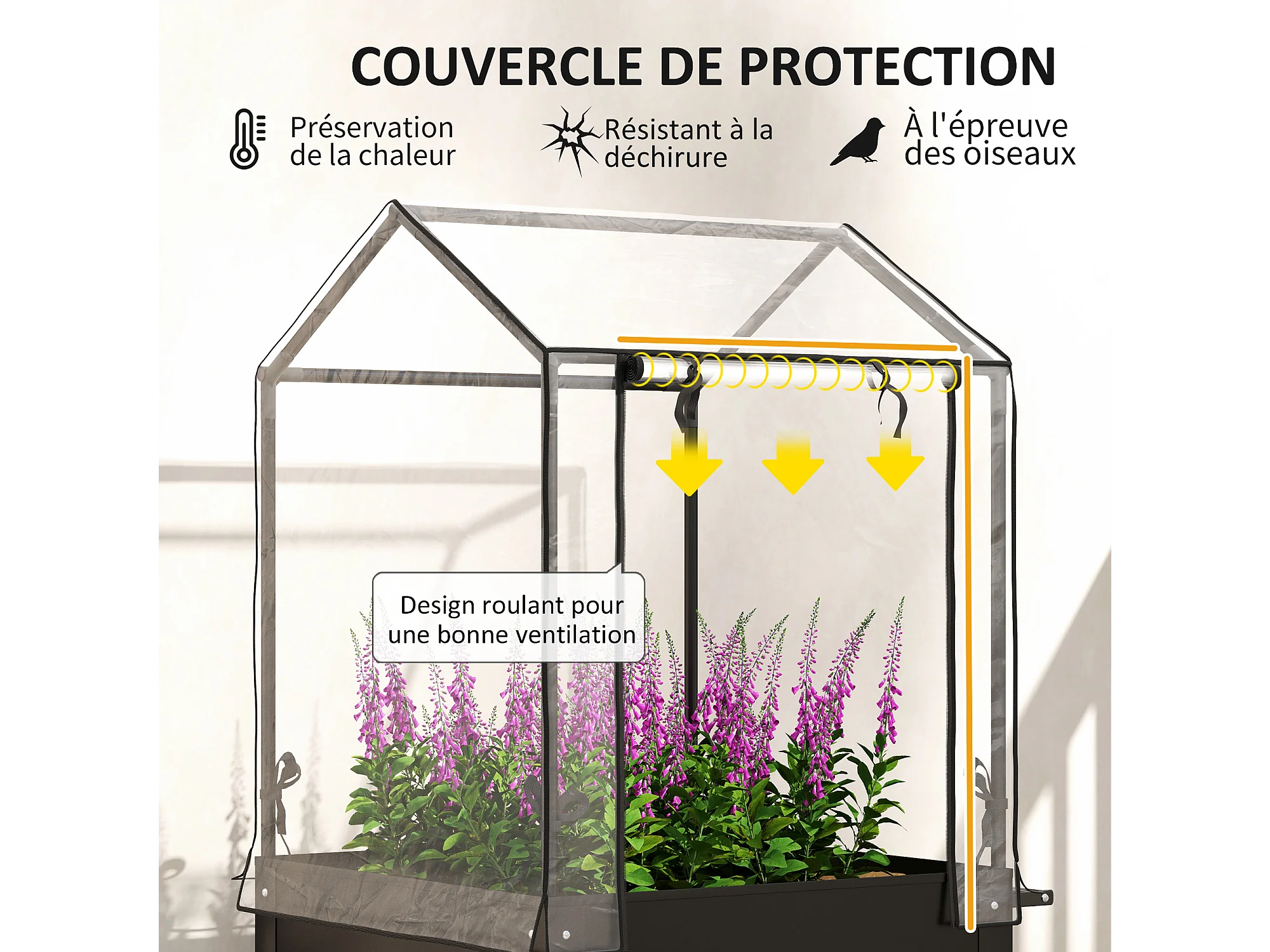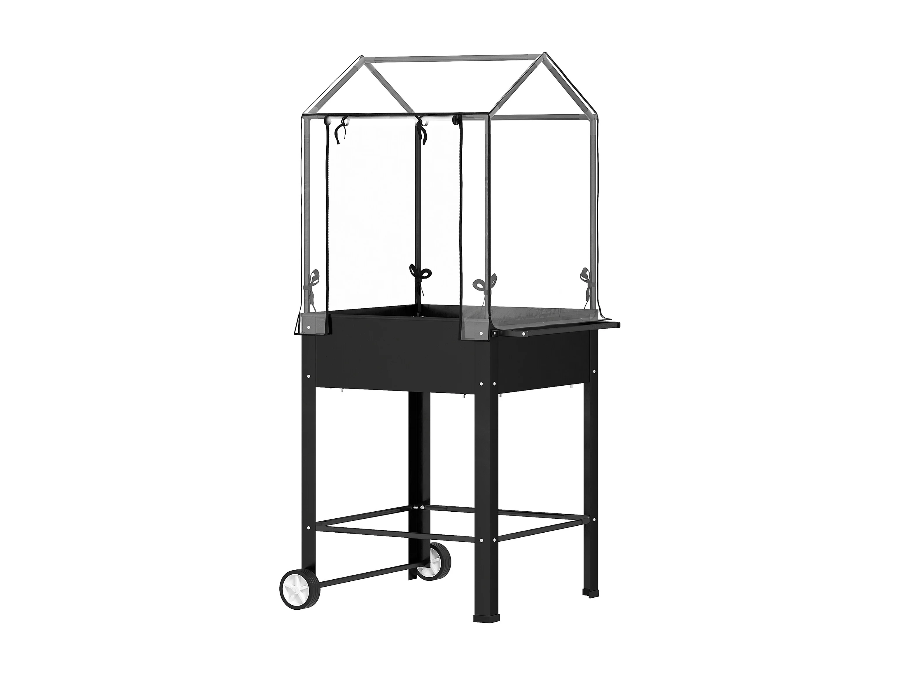 Jardinière sur pied avec serre - carré potager sur pied - 2 roues - 67 x 69 x 147 cm - métal PVC noir