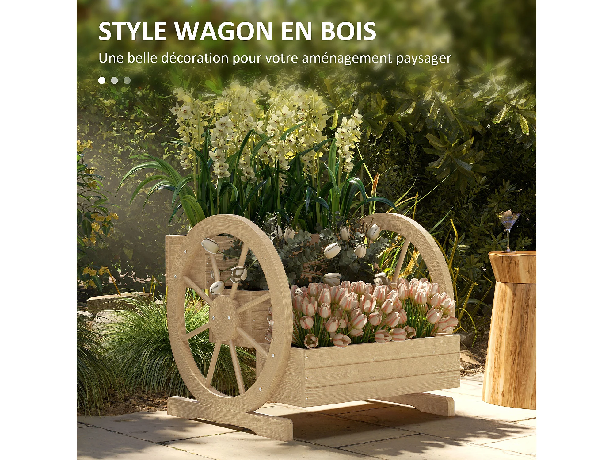 Jardinière sur pied pliable bac à fleurs dim. 70L x 30l x 25H cm corps aspect lattes bois sapin pré-huilé