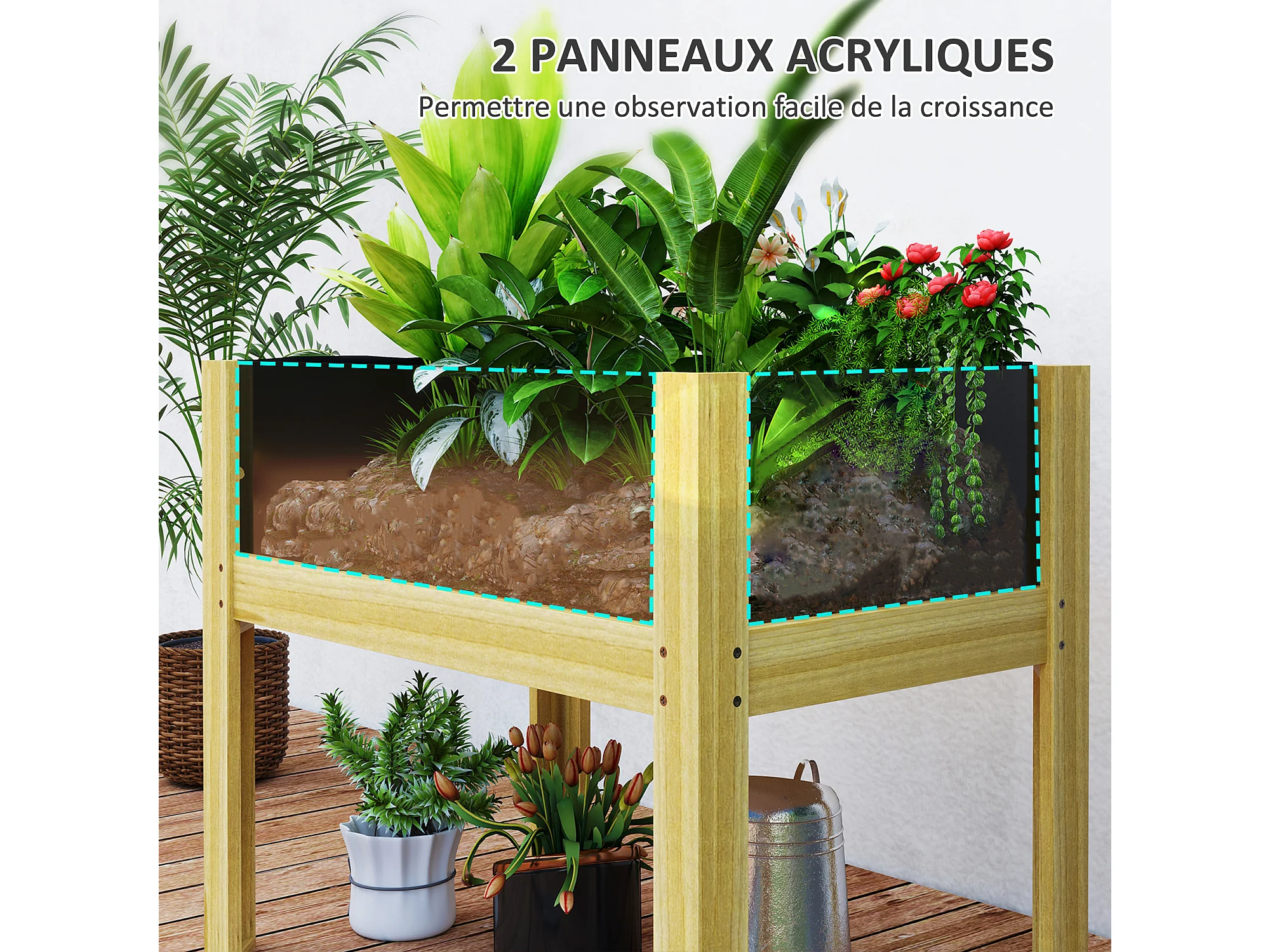 Jardinière sur pied design 2 panneaux acryliques transparents - inserts irrigation, feutre drainage inclus - bois sapin pré-huilé