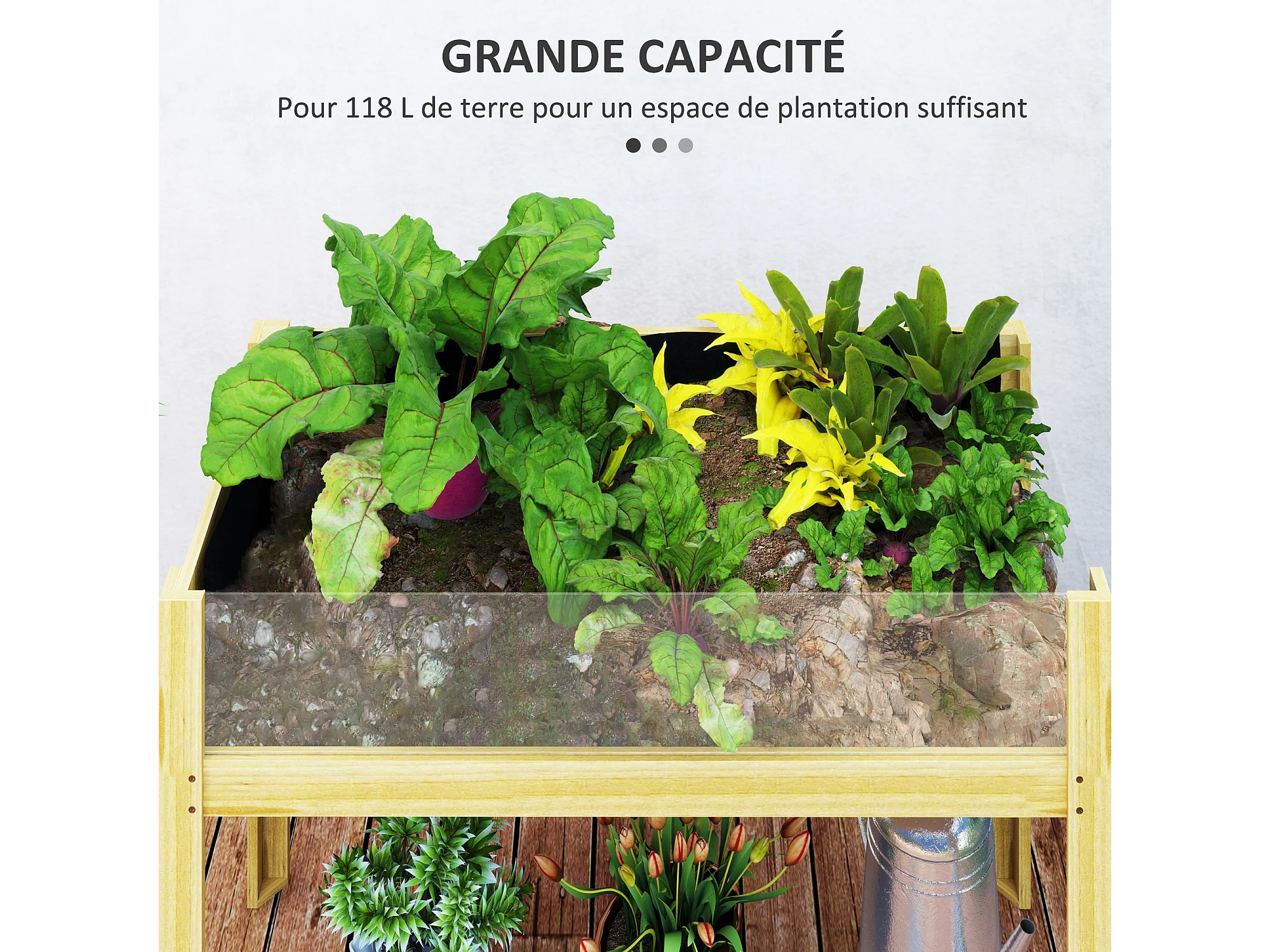 Jardinière sur pied potager dim. 90 x 40 x 81 cm - étagère - inserts d'irrigation, géotextile inclus - bois sapin pré-huilé