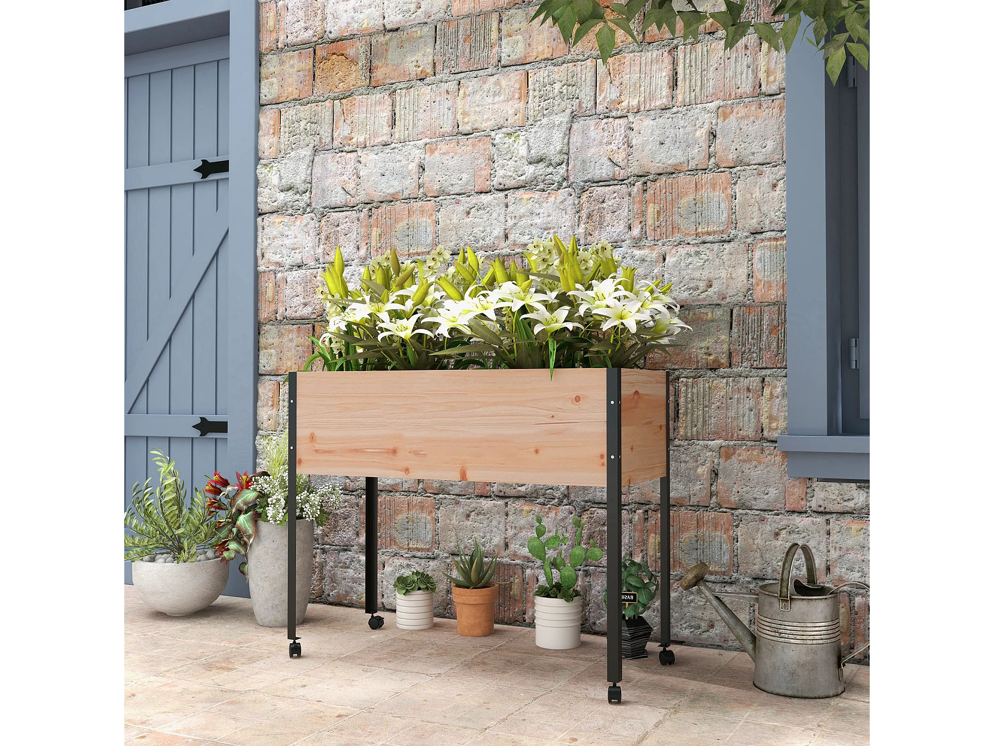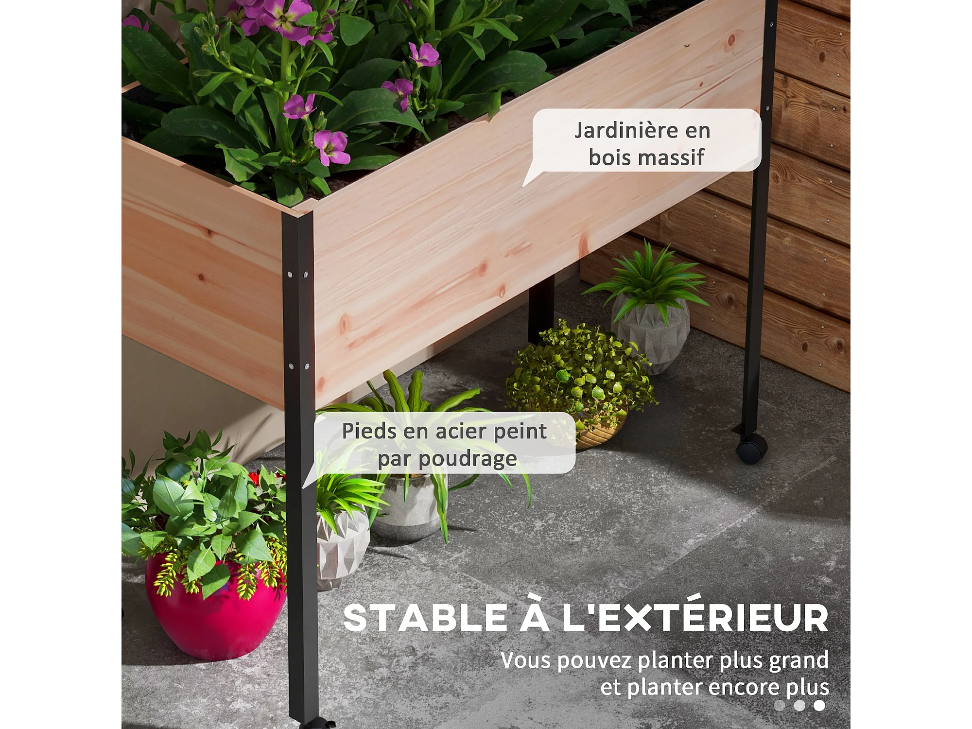 Jardinière sur pieds potager dim. 122L x 56l x 76H cm inserts d'irrigation + feutre de drainage inclus bois massif sapin