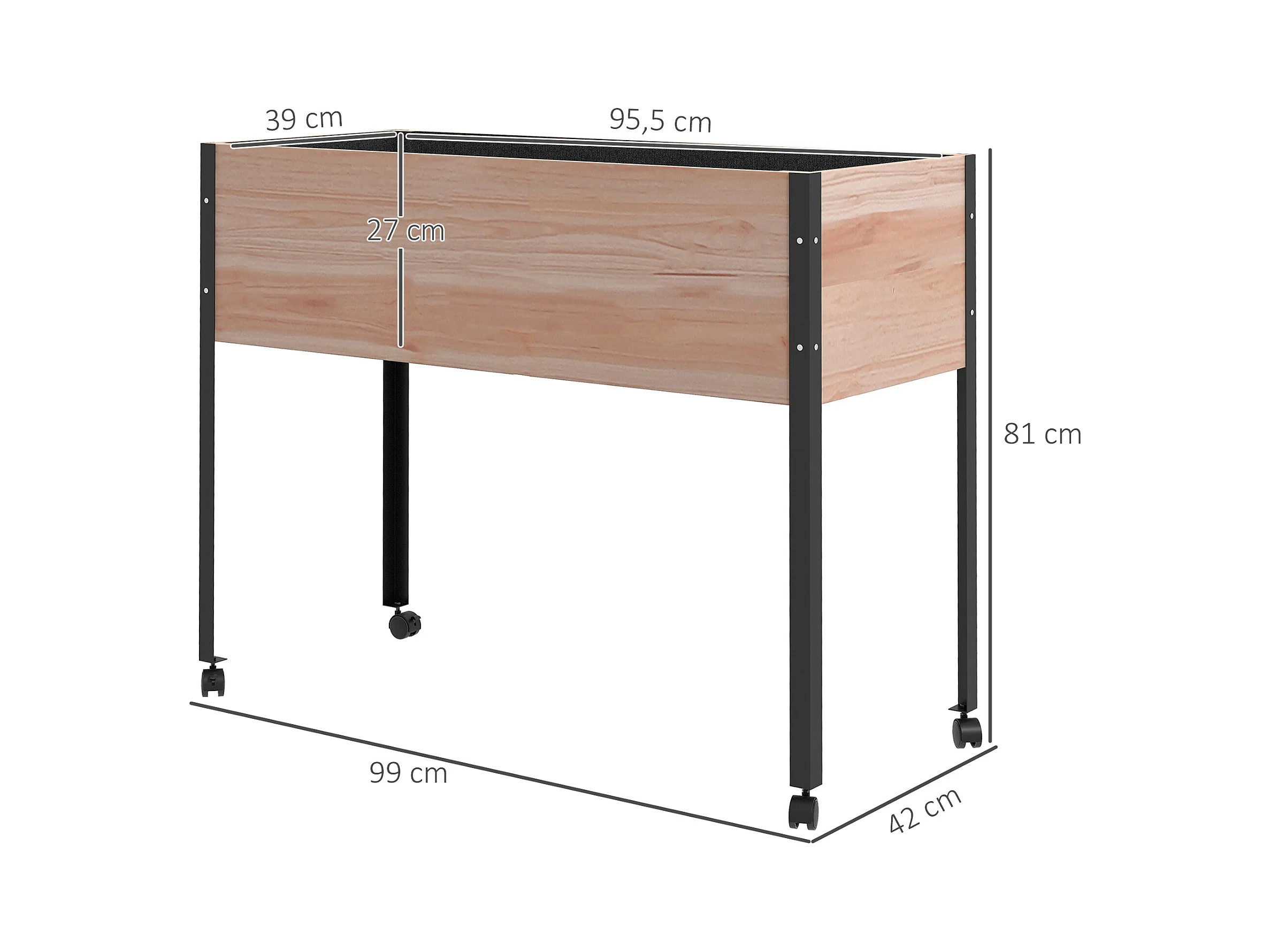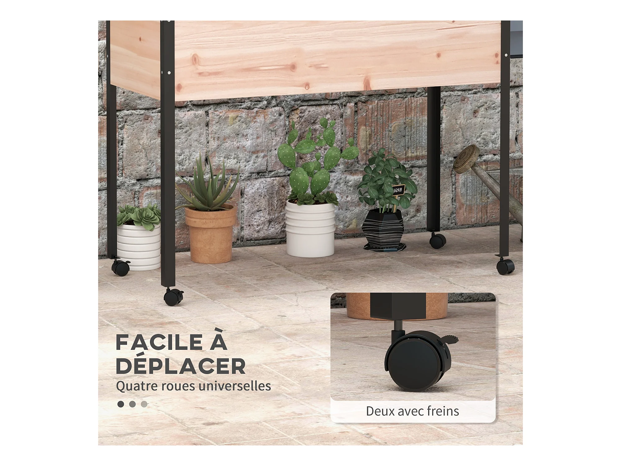 Jardinière sur pied - potager sur roulettes - inserts d'irrigation, feutre drainage inclus - acier bois sapin pré-huilé