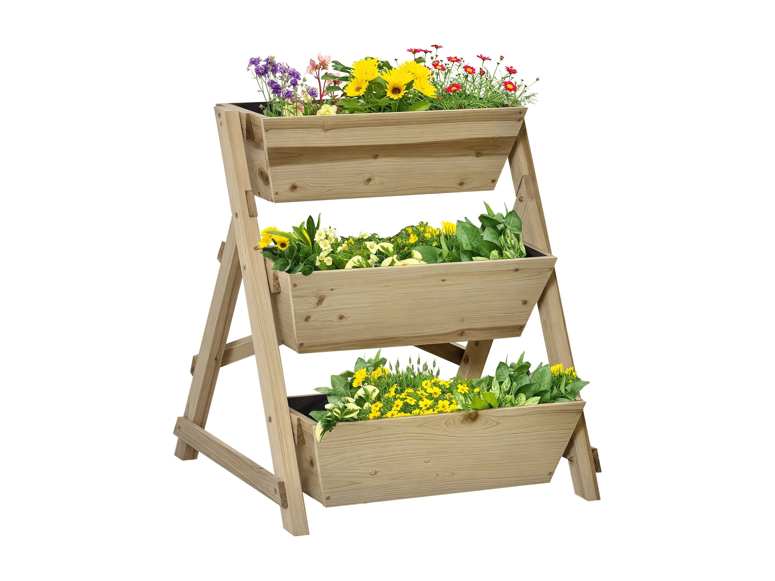 Jardinière sur pieds carré potager 3 étages dim. 71L x 61l x 77H cm inserts d'irrigation feutre de drainage bois sapin autoclave