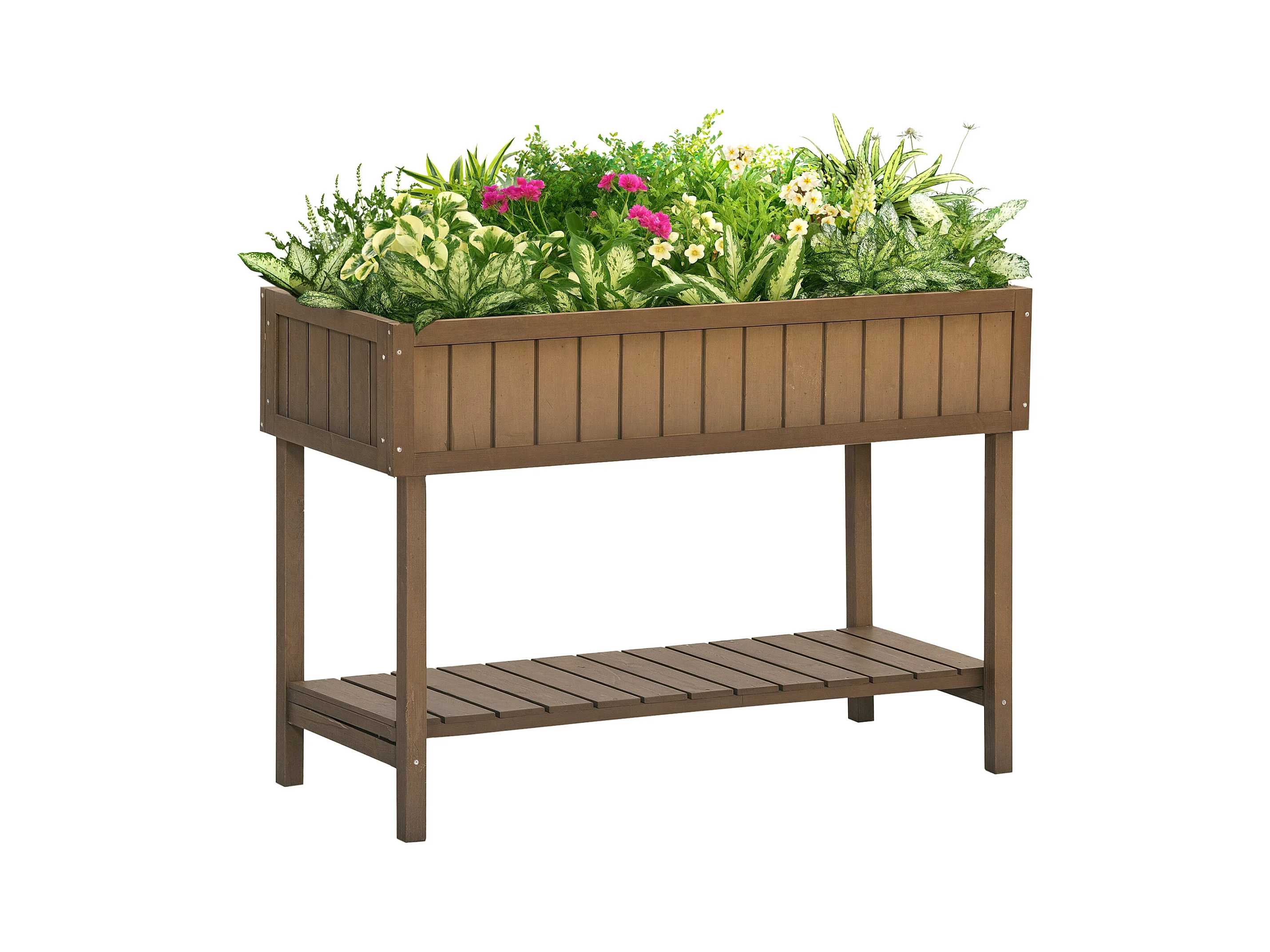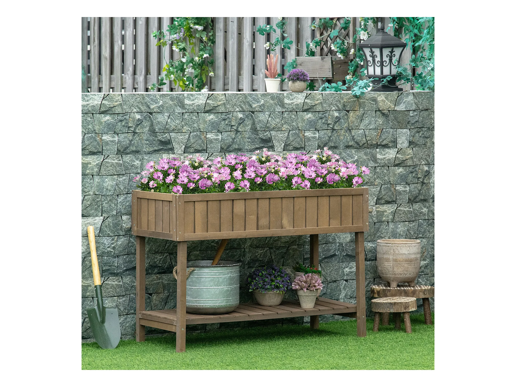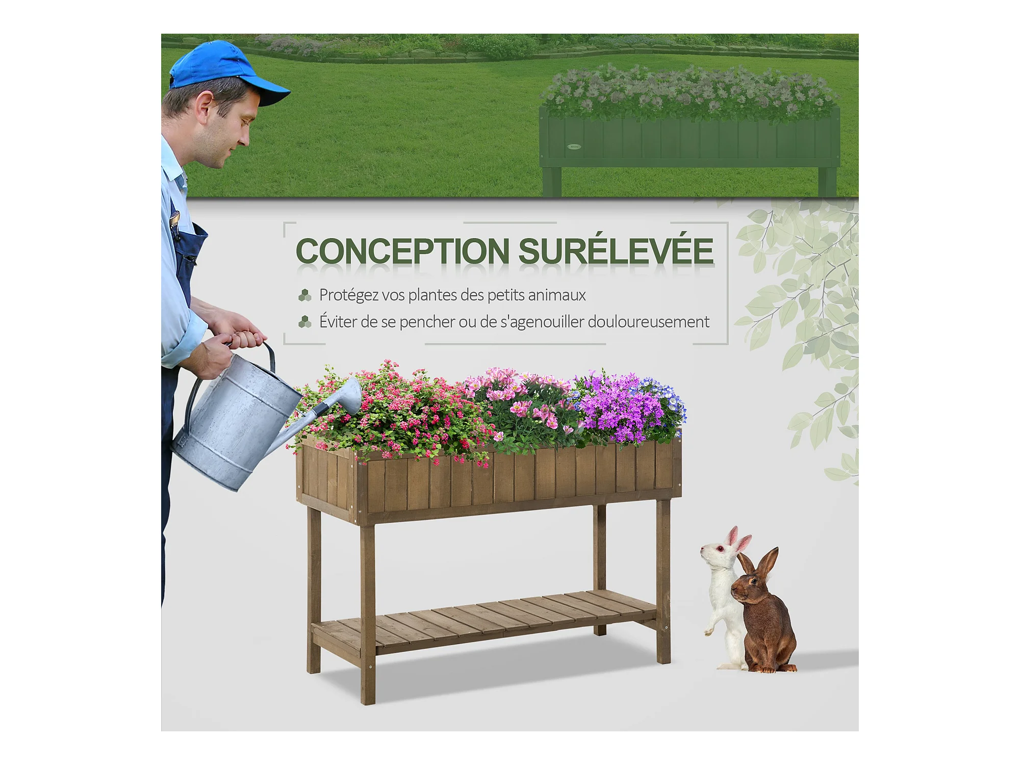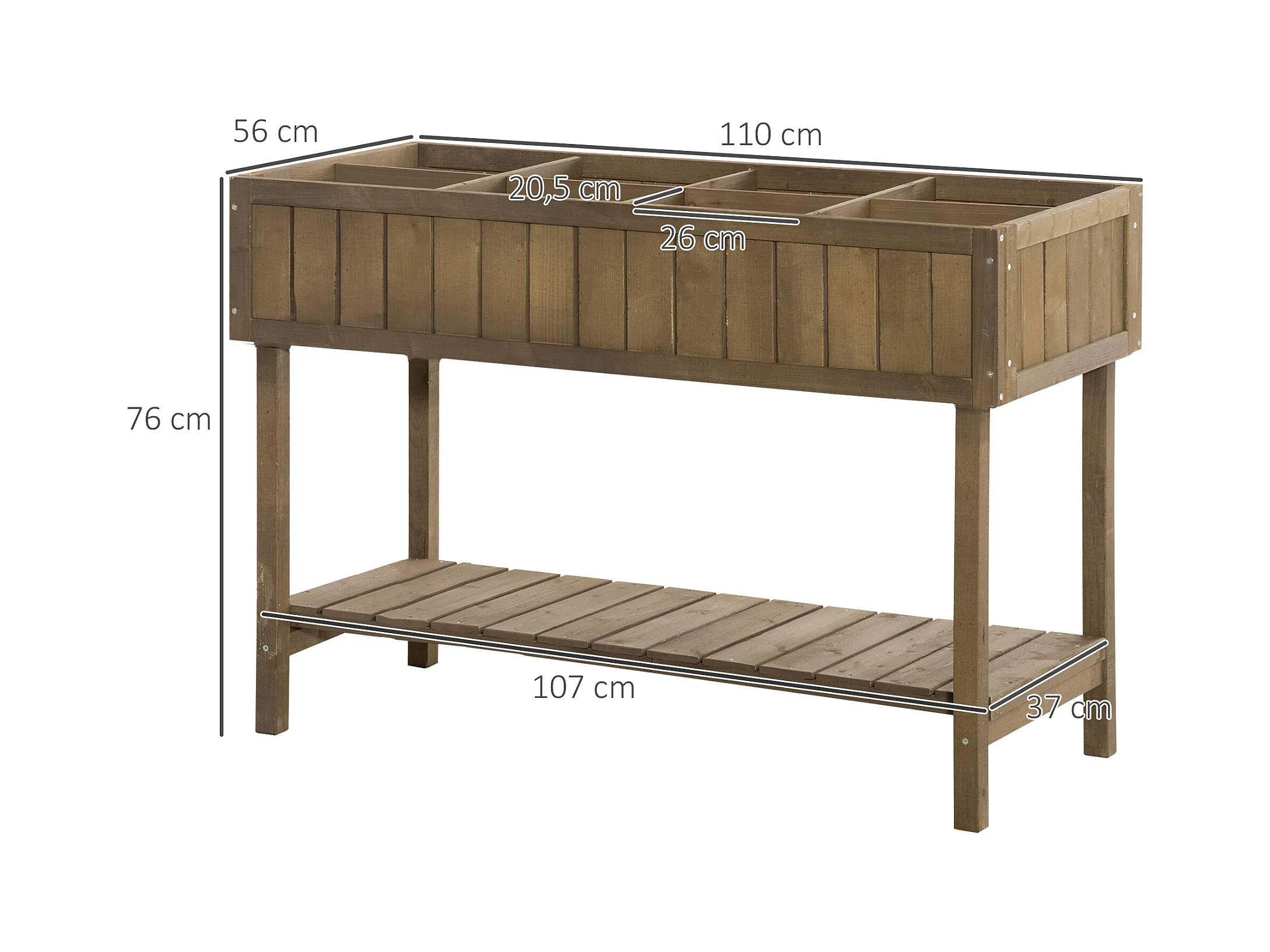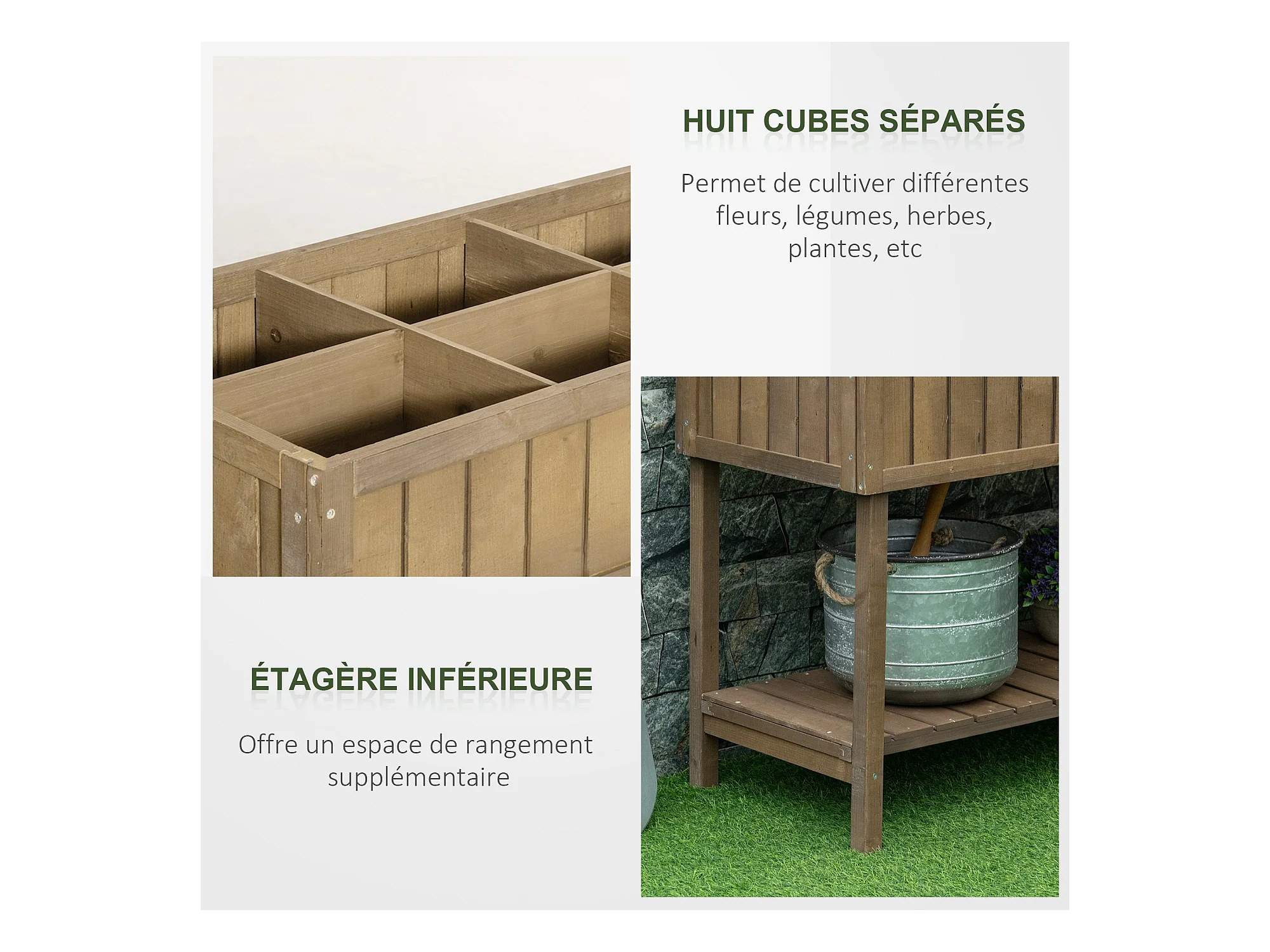Jardinière sur pieds carré potager avec étagère dim. 110L x 46l x 76H cm 8 compartiments & inserts d'irrigation bois de sapin marron