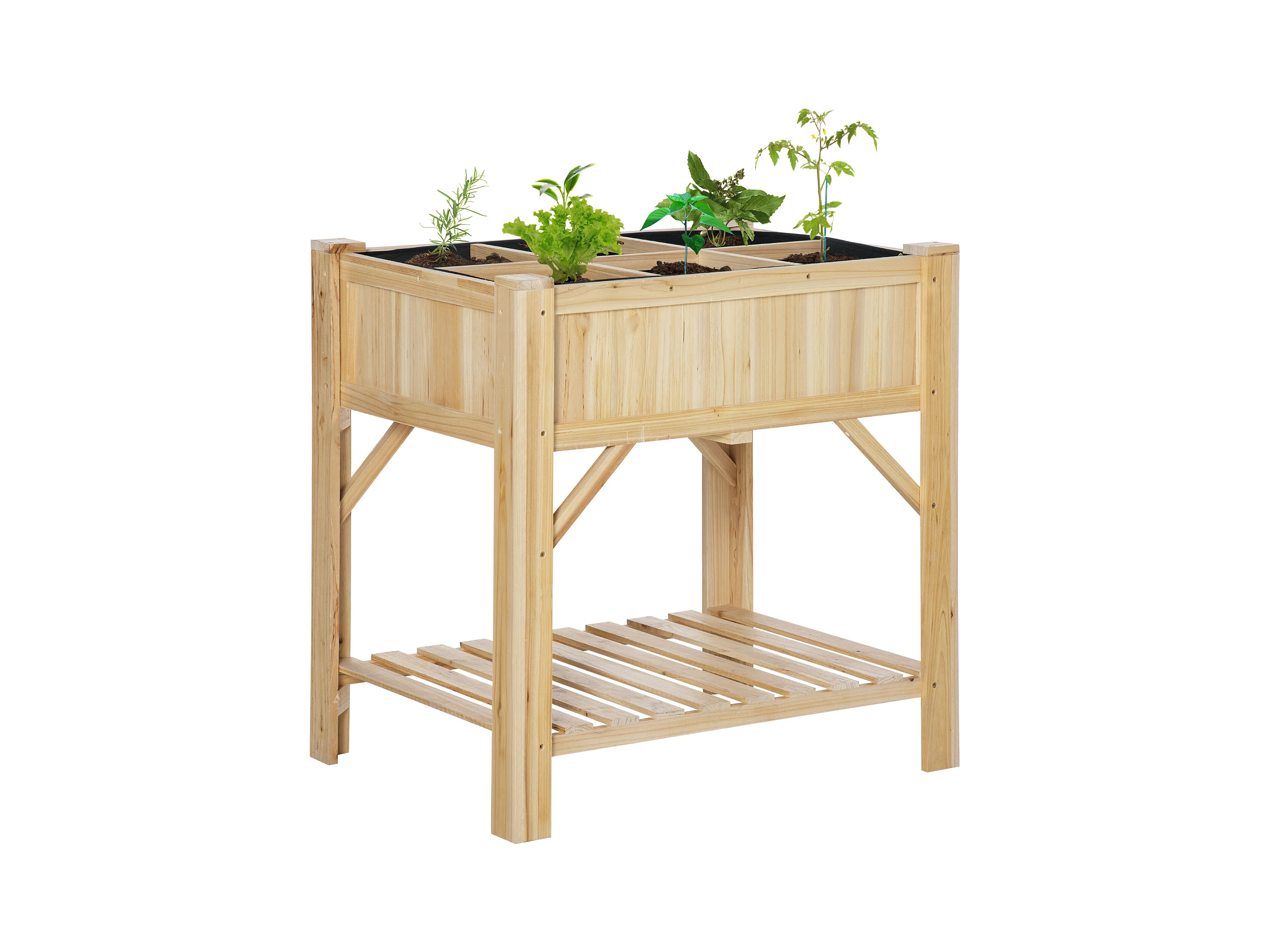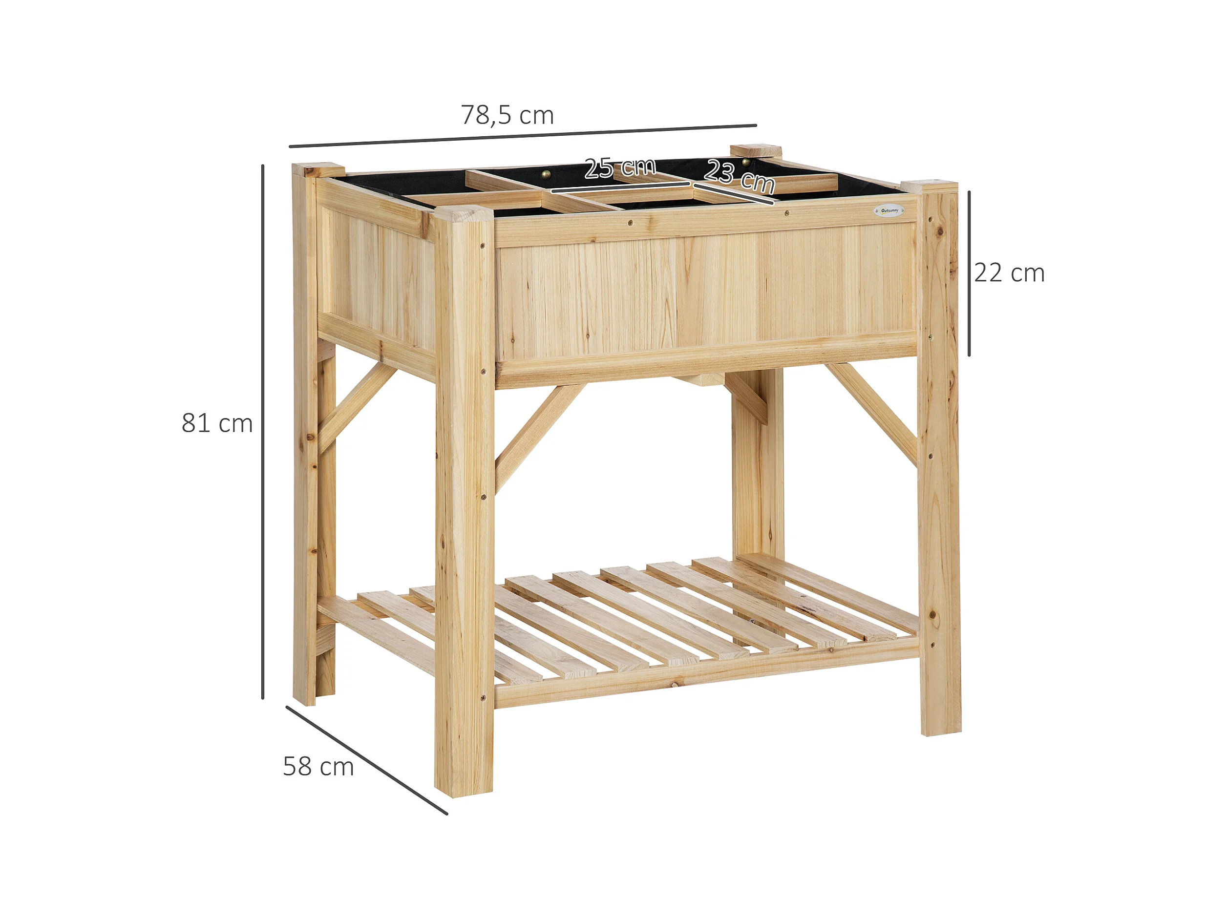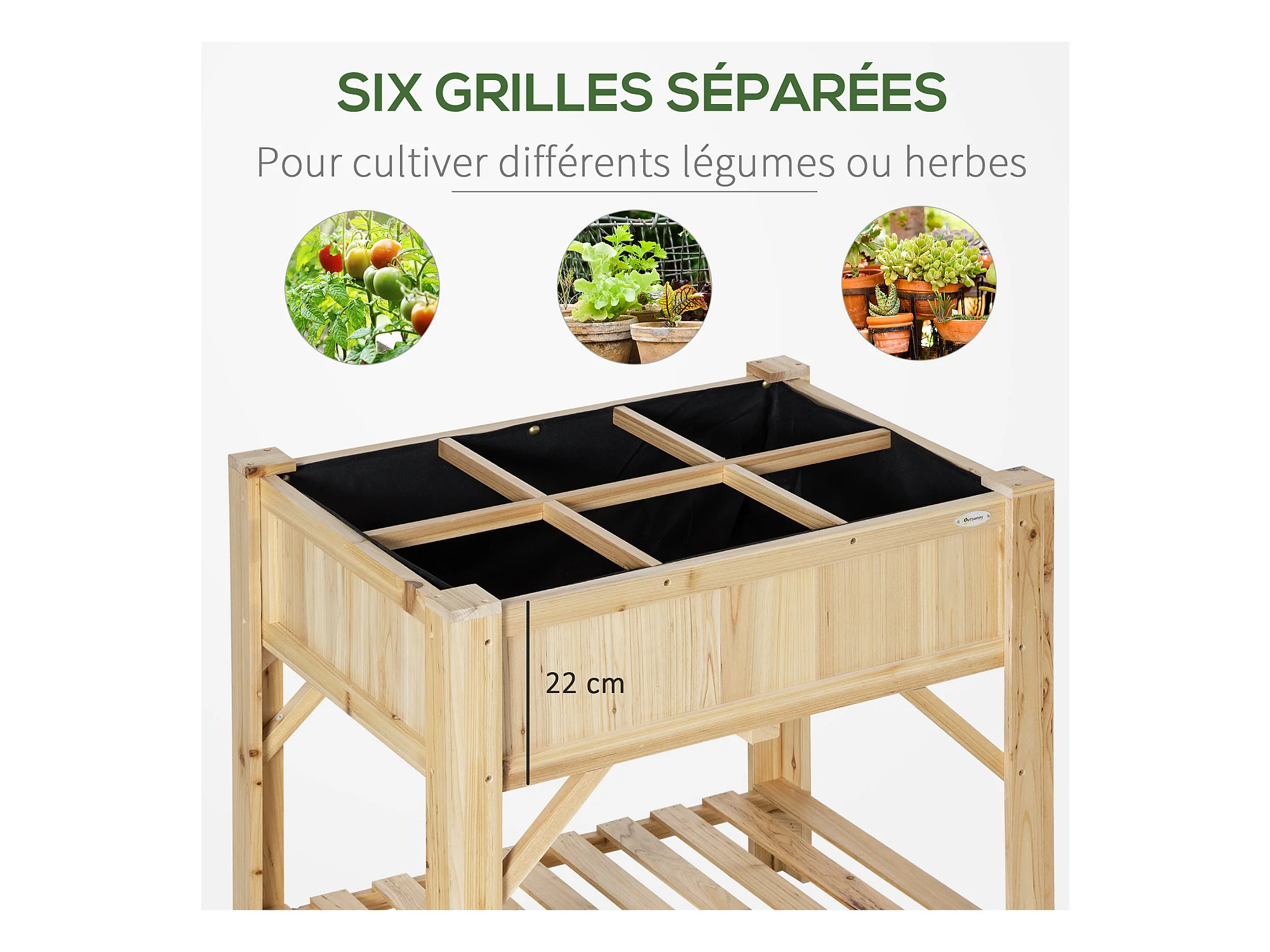 Jardinière sur pieds - carré potager avec étagère - dim. 78L x 58l x 81H cm - 6 compartiments - feutre drainage inclus - bois sapin pré-huilé