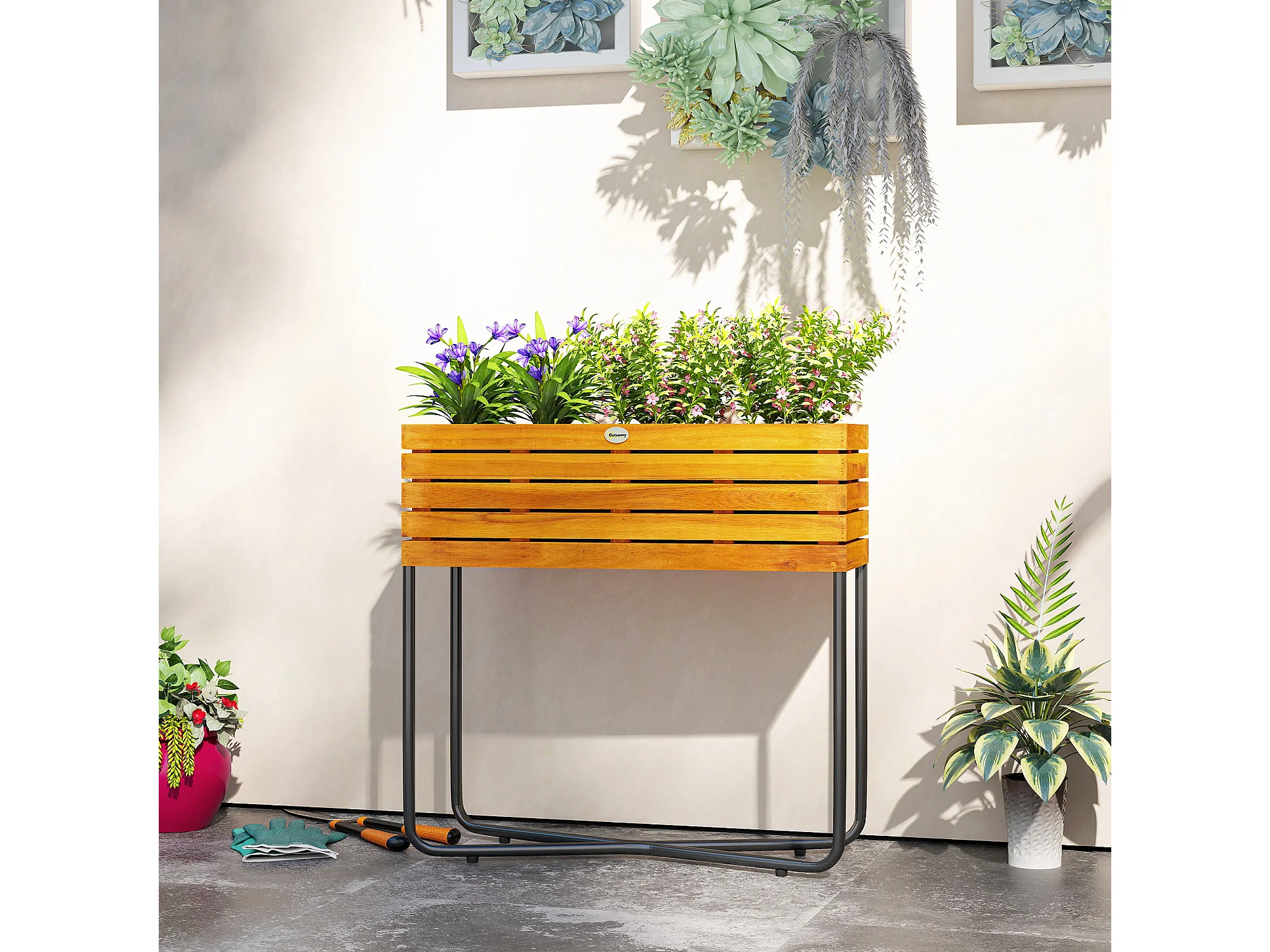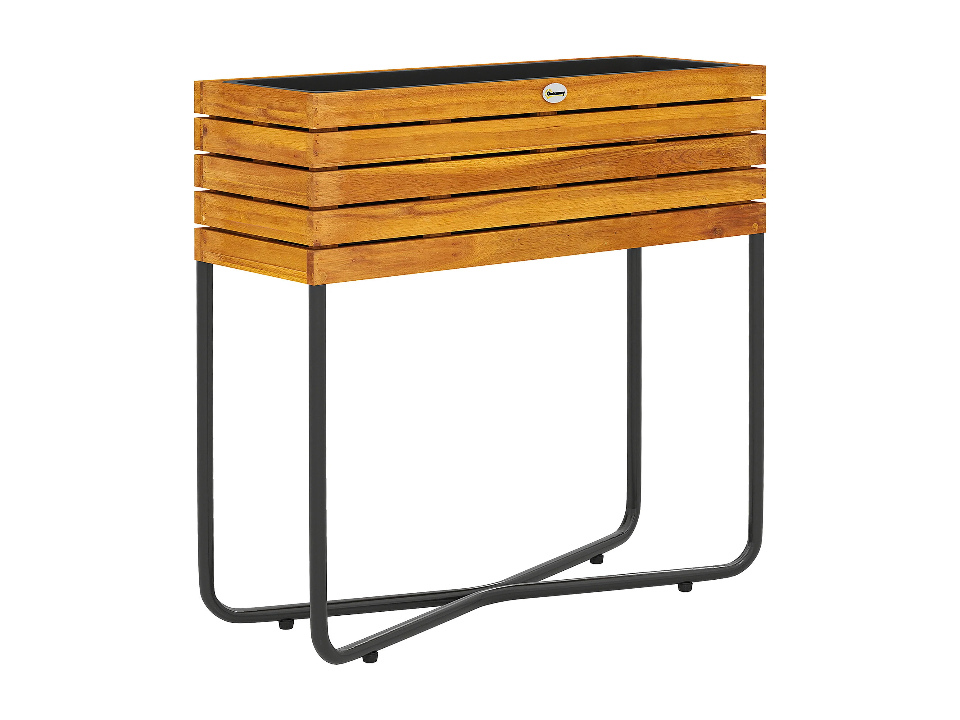 Jardinière sur pieds design bois - potager sur pieds - 62 x 22,5 x 61 cm - acier noir acacia verni
