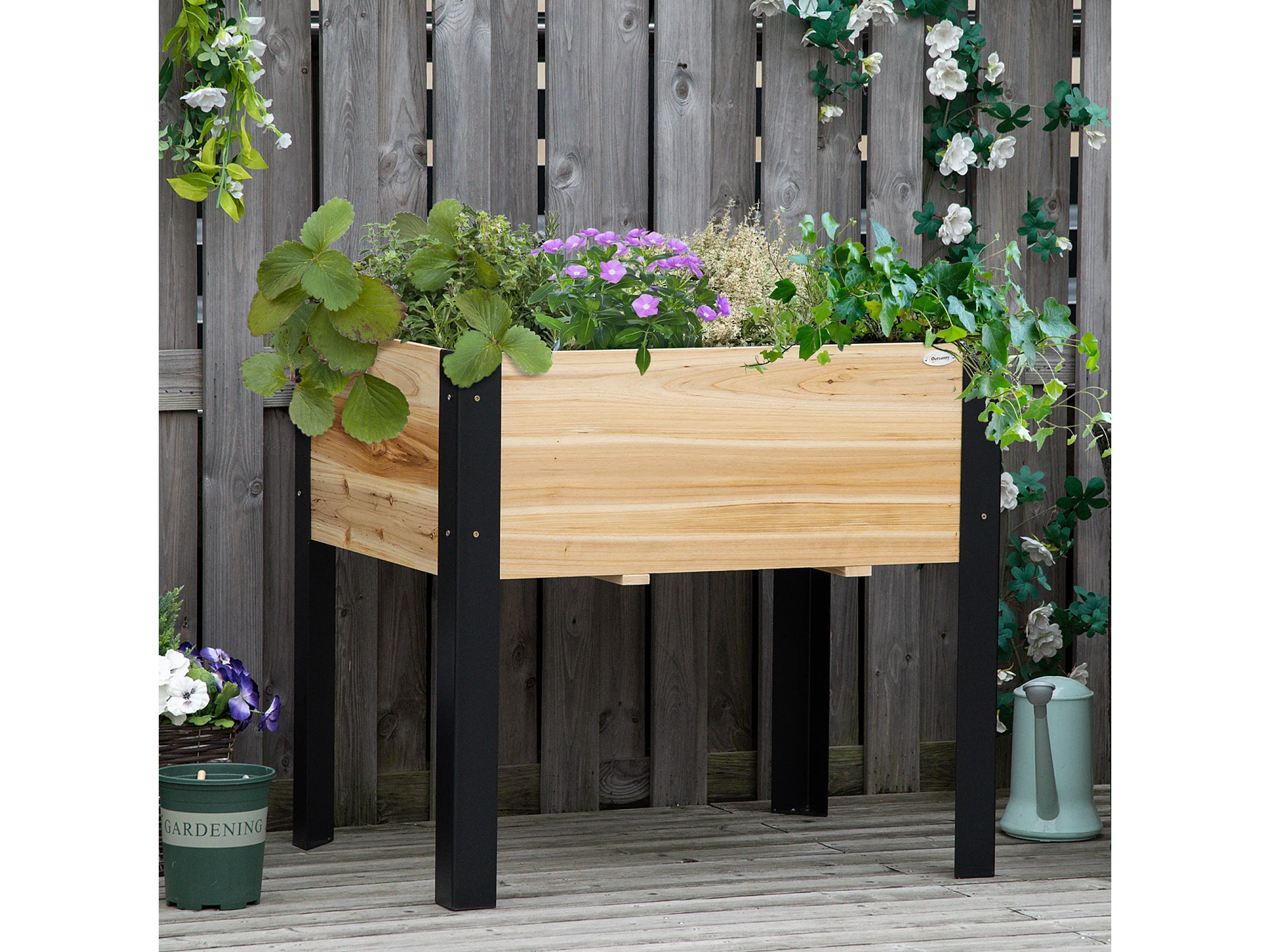 Jardinière sur pieds - potager - feutre de drainage inclus - métal époxy noir bois sapin