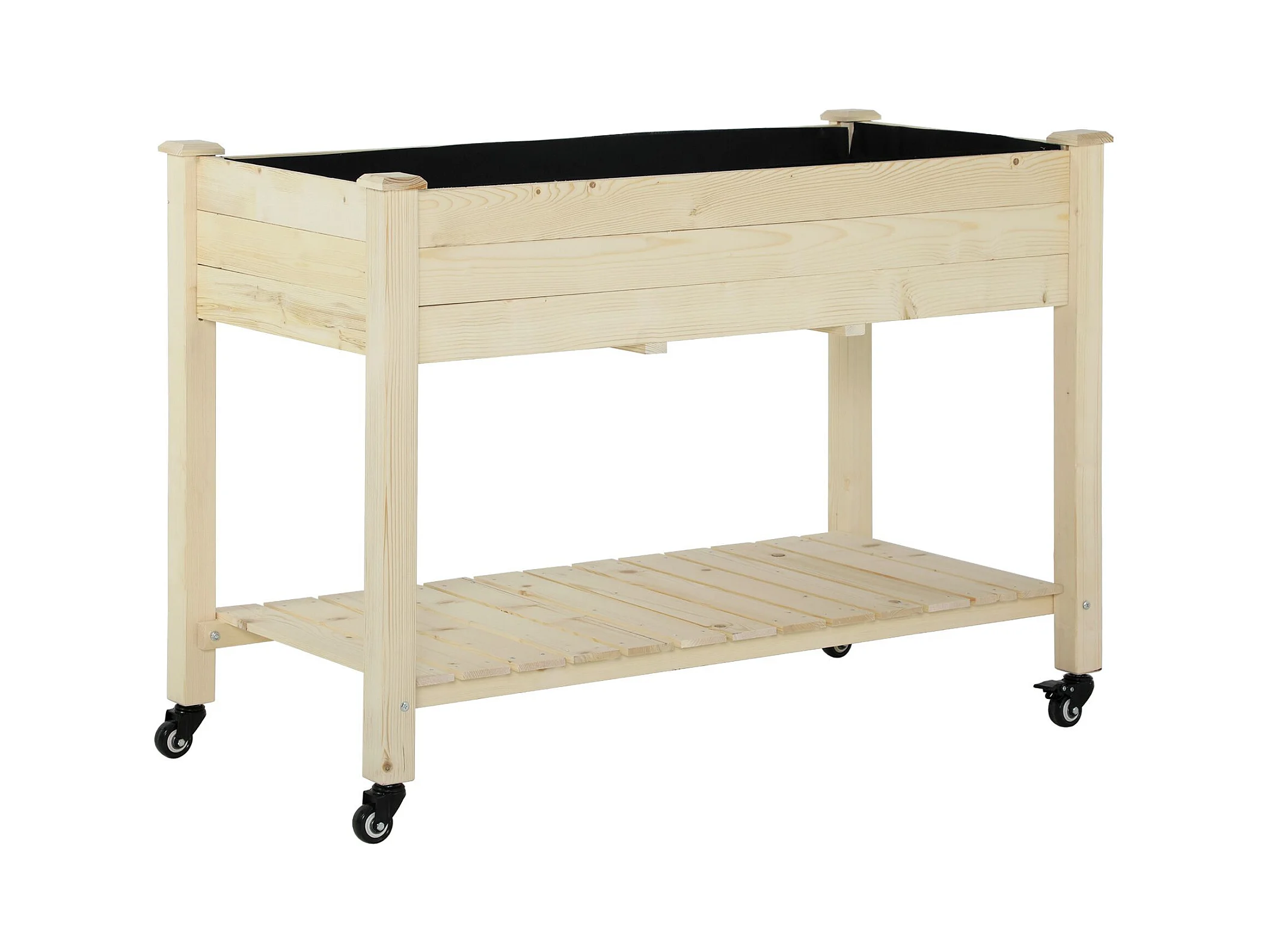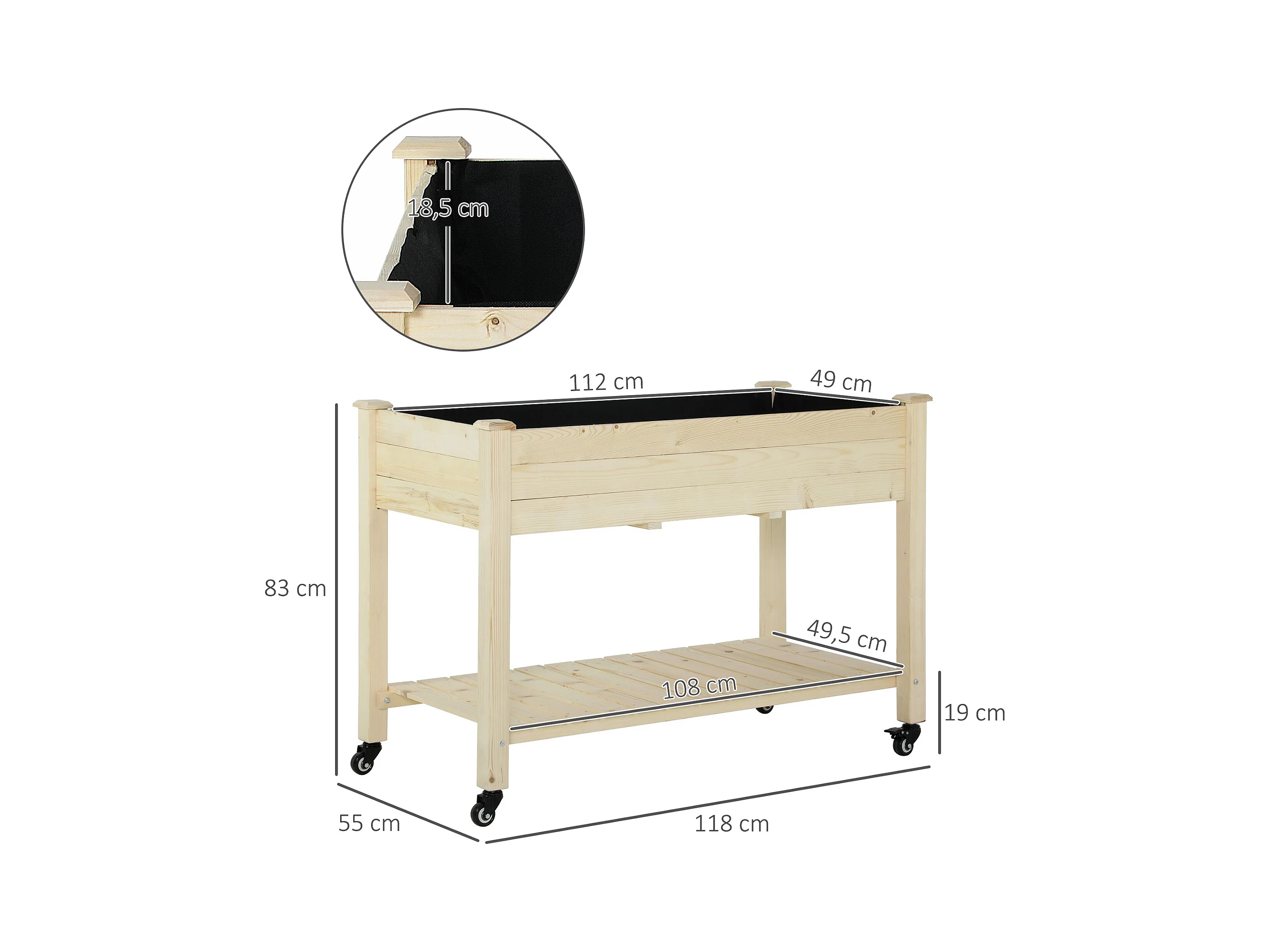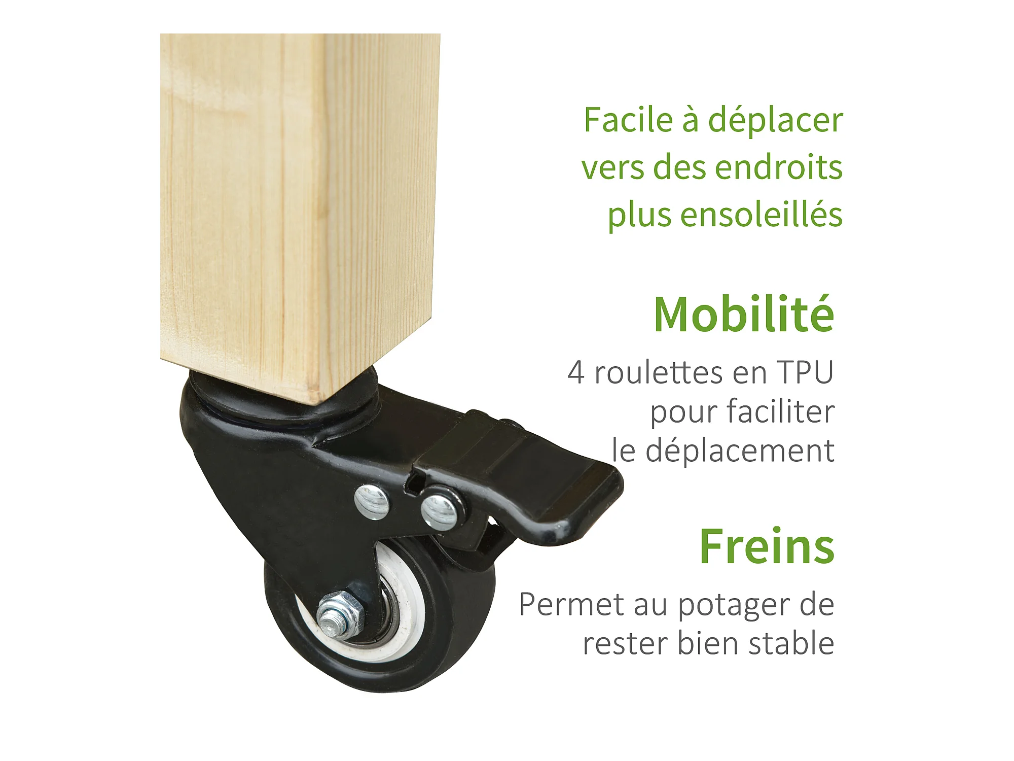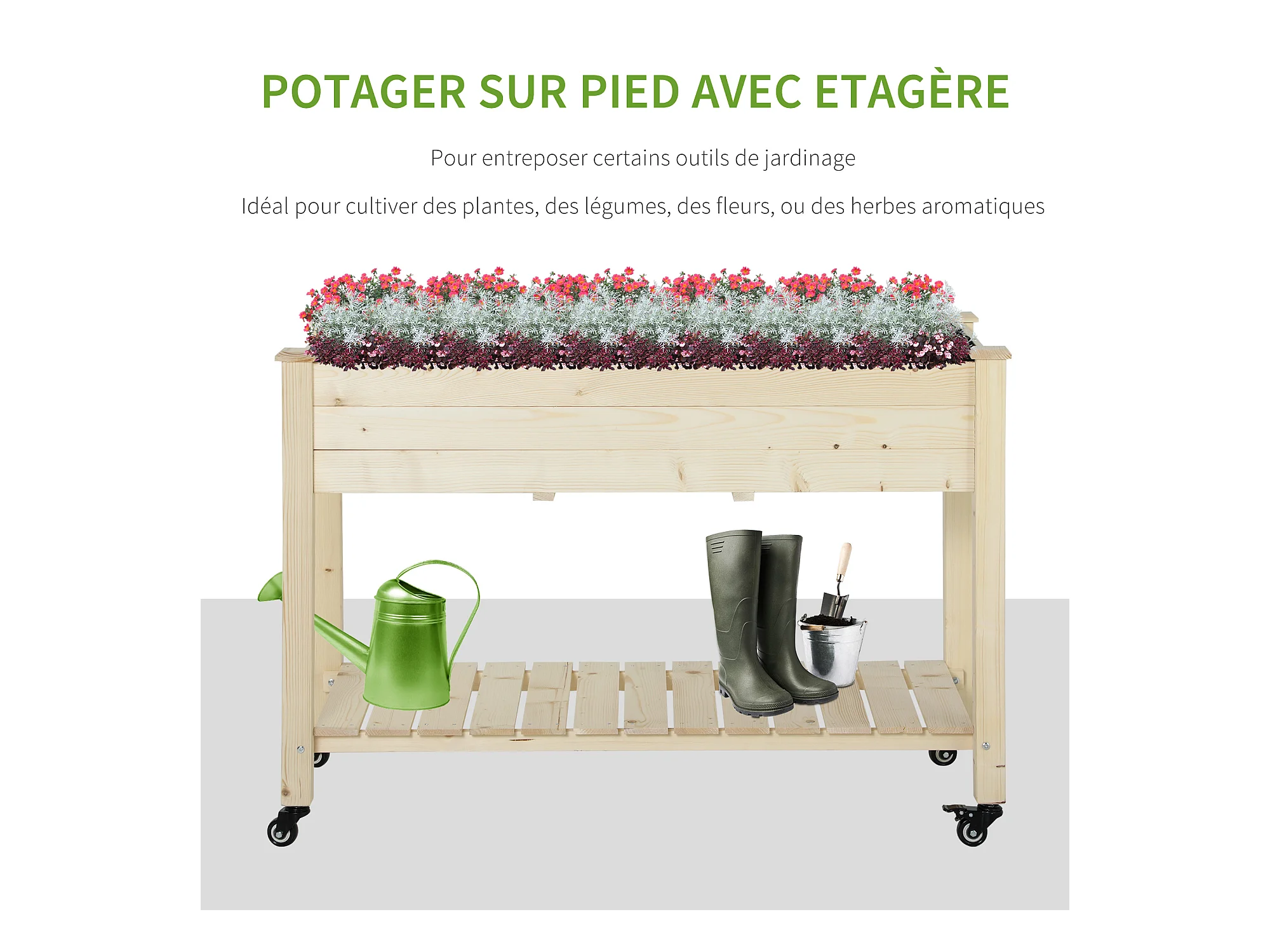 Jardinière sur pieds - potager sur roulettes - étagère, inserts d'irrigation, feutre de drainage inclus - bois massif sapin