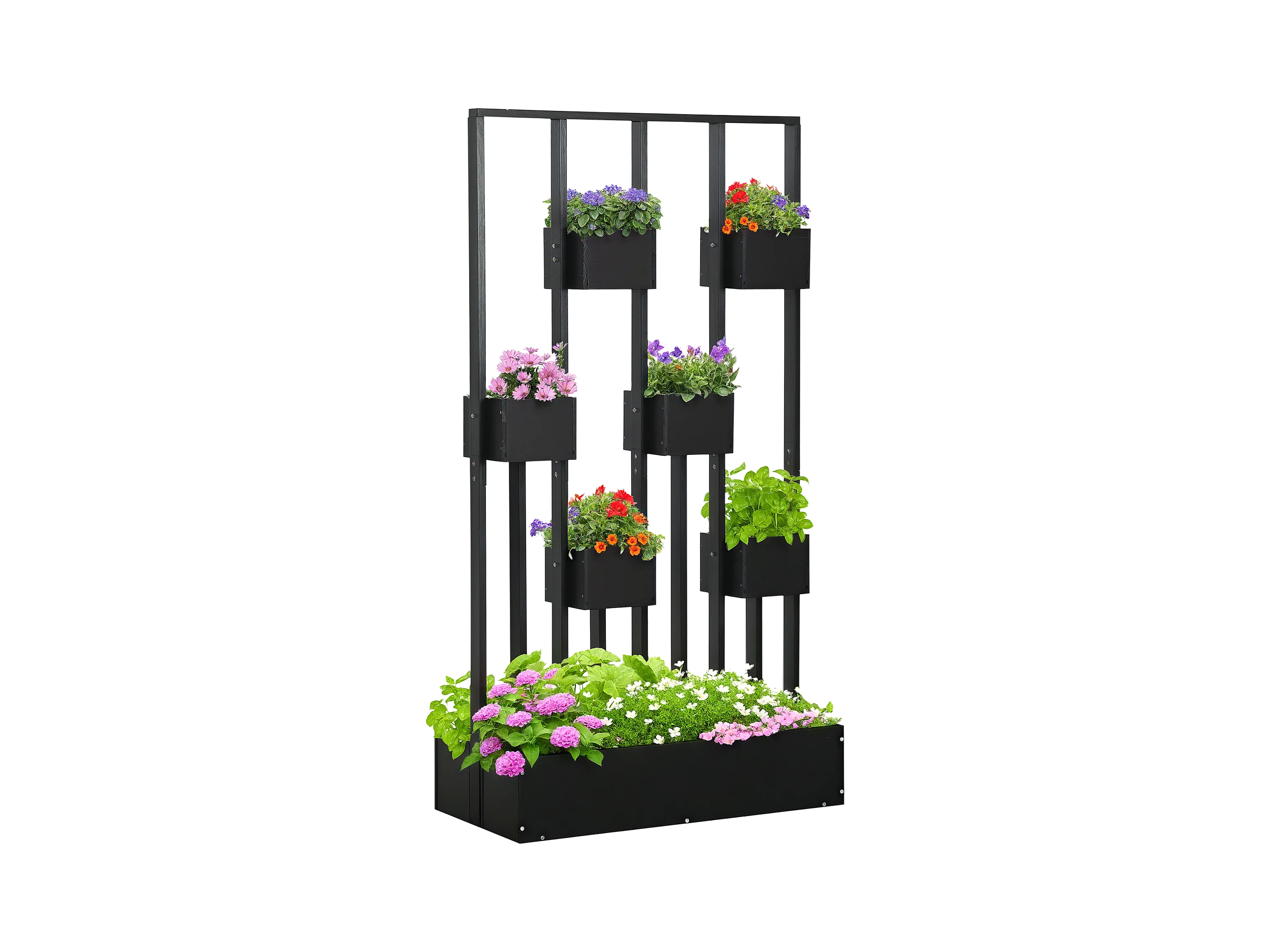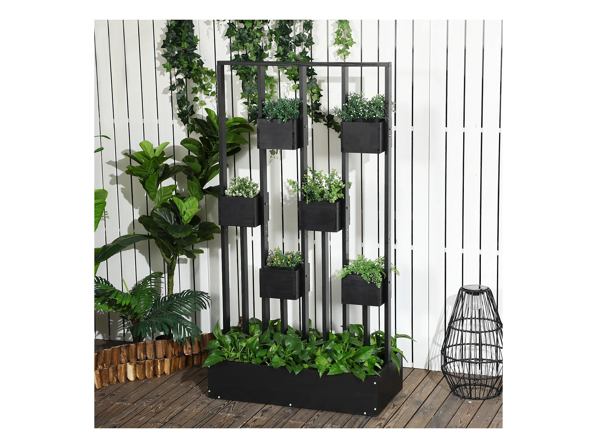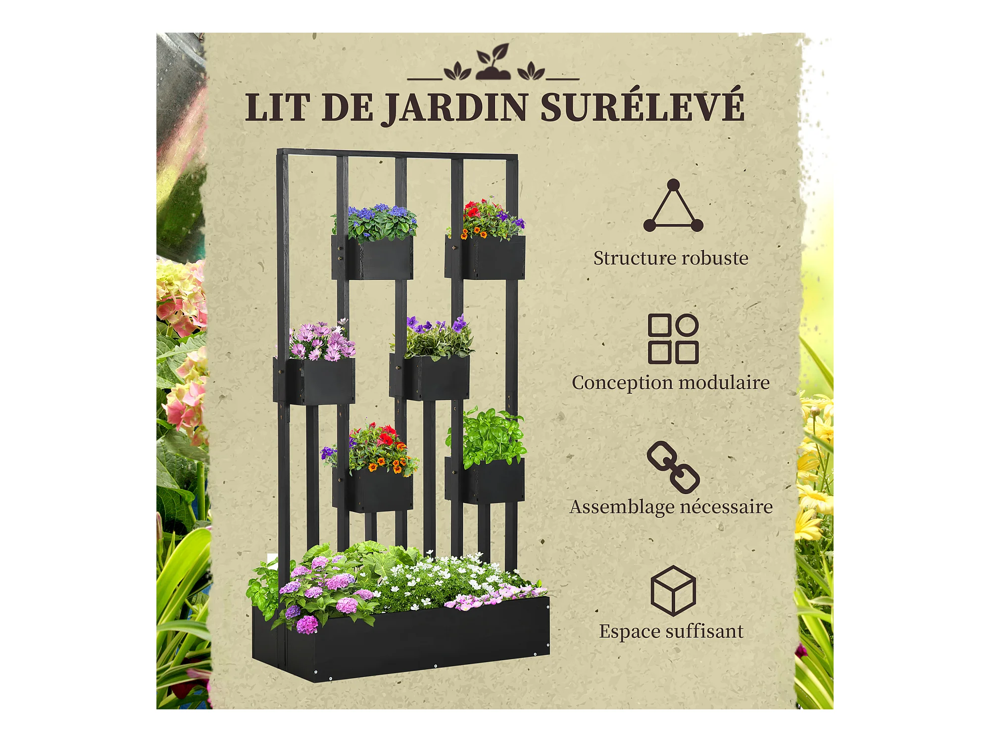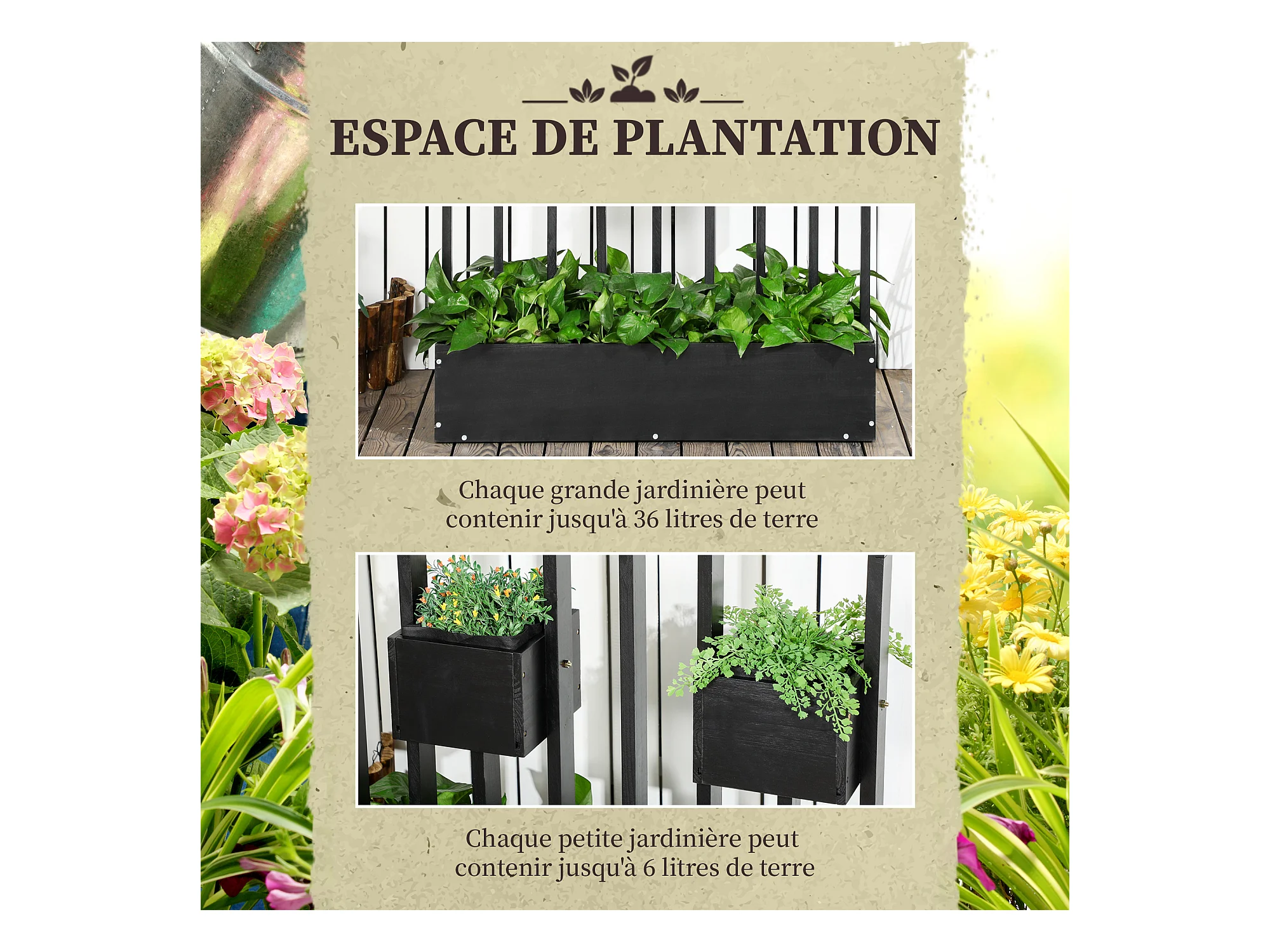 Jardinière surélevée avec treillis - dim. 90L x 45l x 170H cm - bois de sapin noir