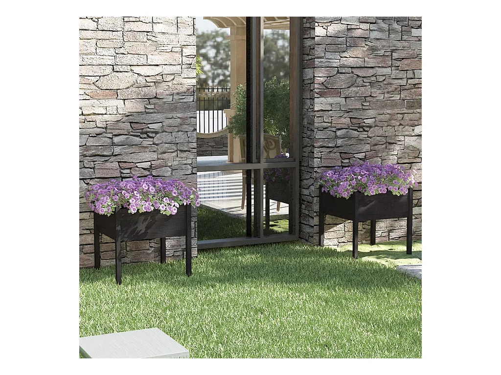 Jardinières d'extérieur 2pcs Noir 40x40x70cm Bois de pin massif BE8286