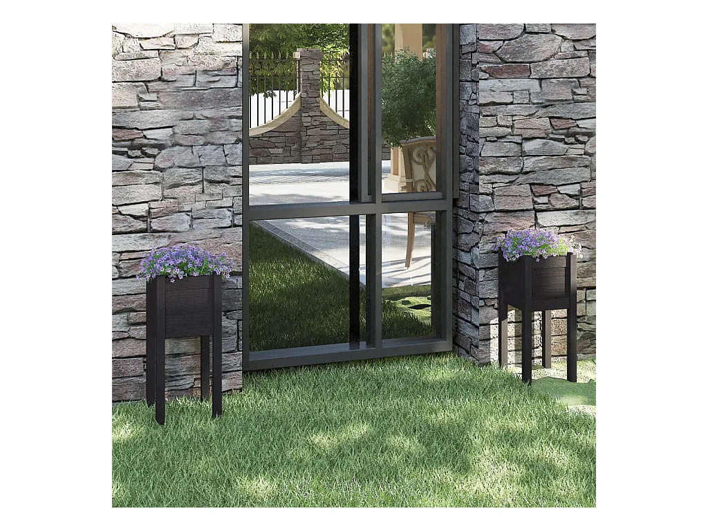 Jardinières d'extérieur 2pcs Noir 40x40x70 Bois de pin massif