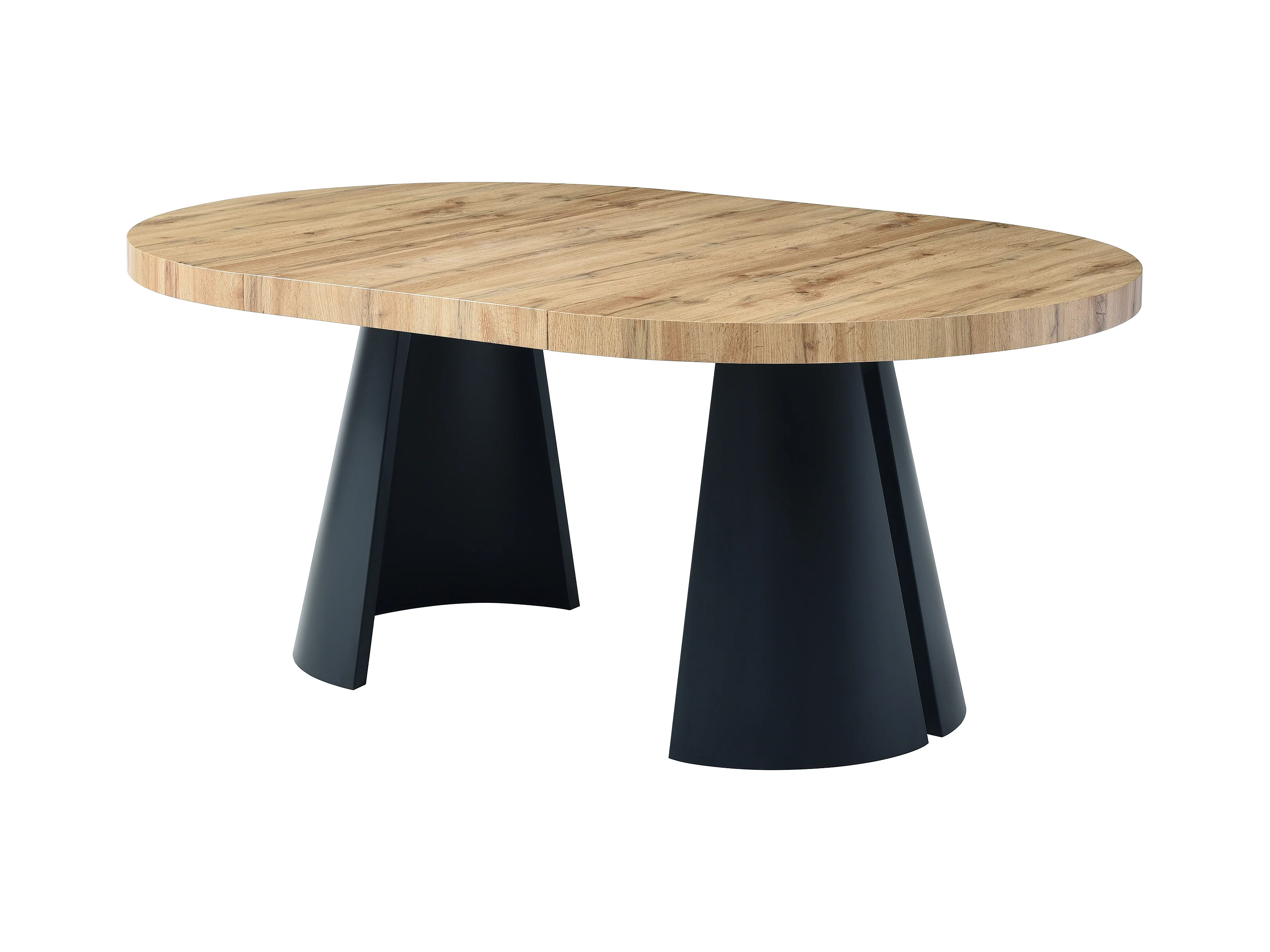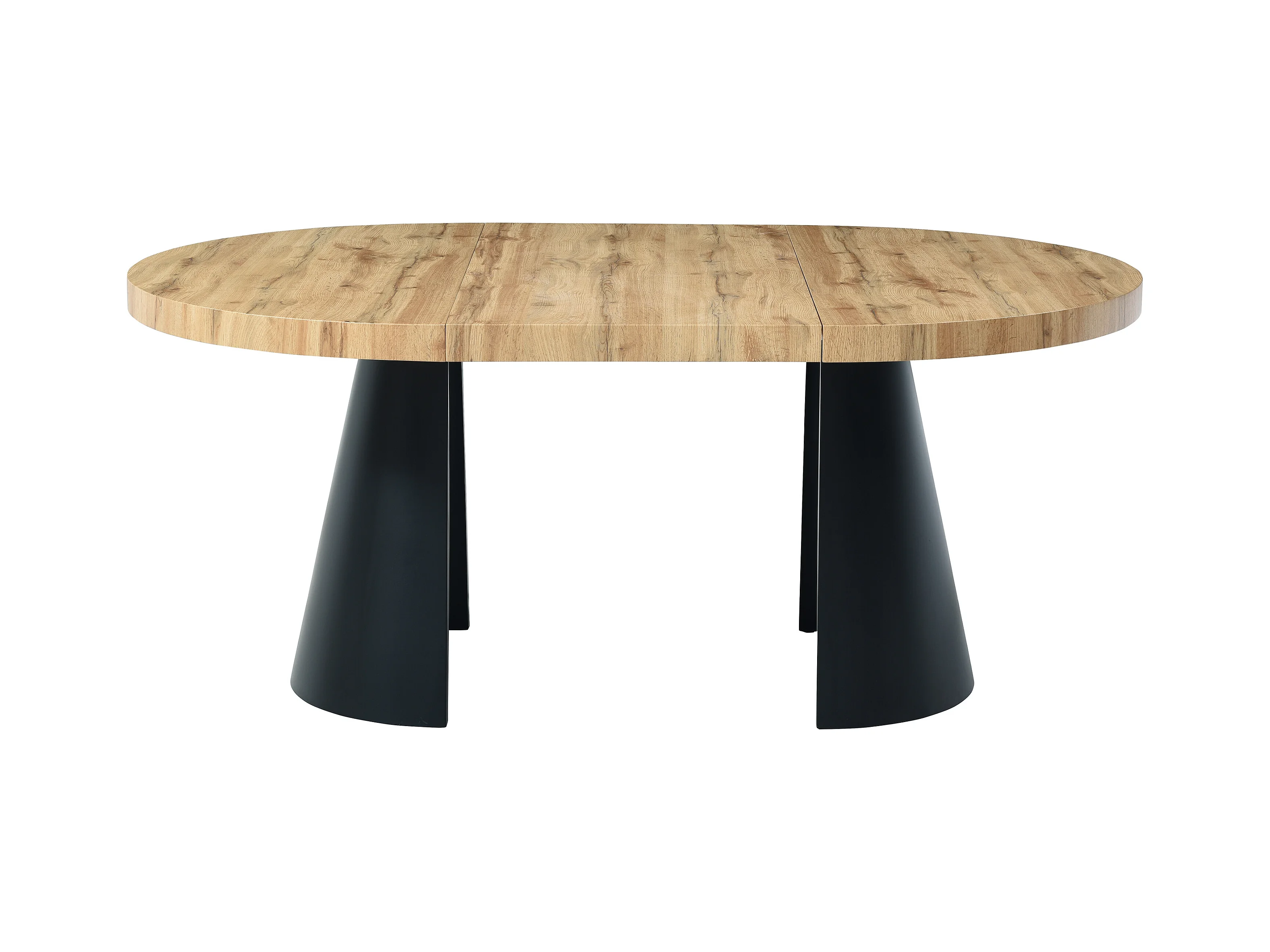 Table à manger extensible 4 à 12 personnes en MDF et métal noir - Naturel clair - JARELIA