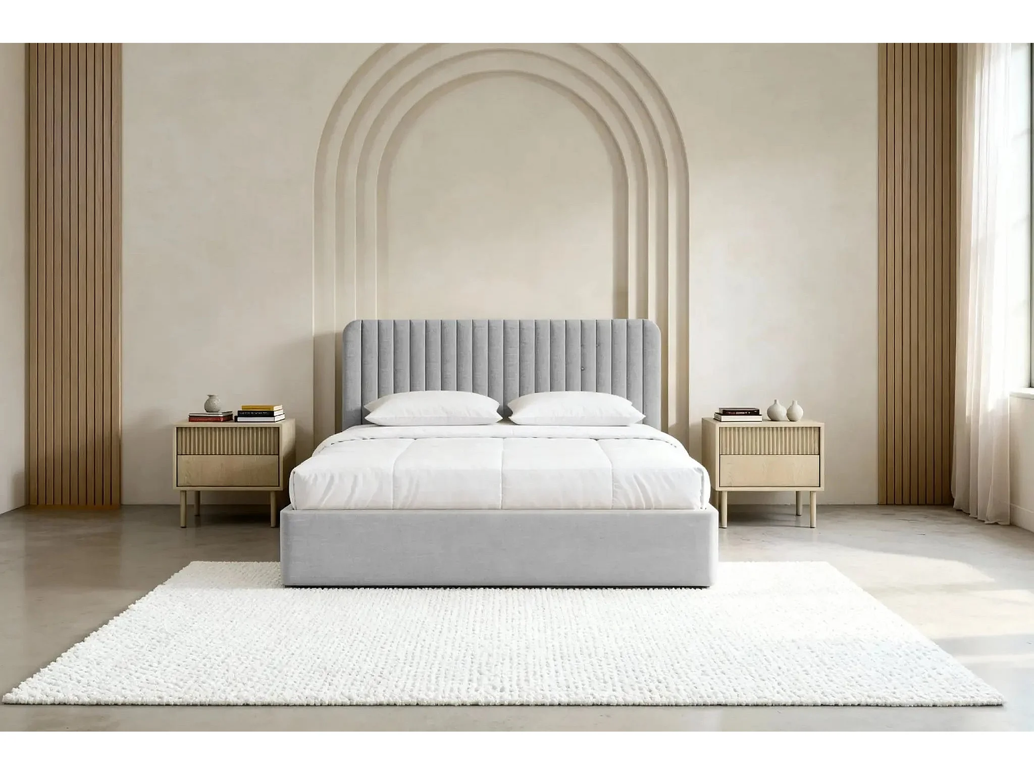 JEANNE - Lit coffre tissu velours 160x200cm - Gris clair