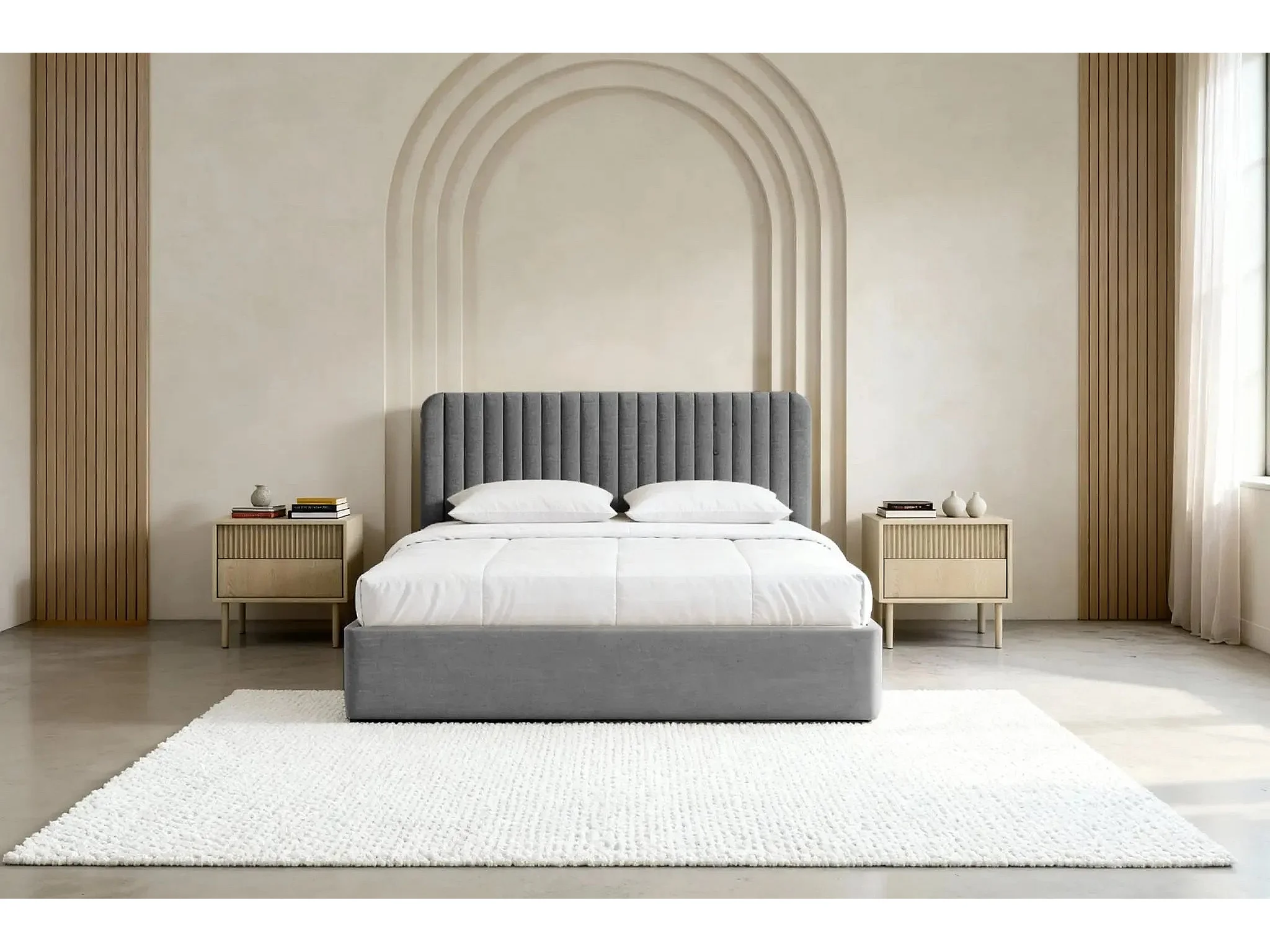 JEANNE - Lit coffre tissu velours 180x200cm - Gris foncé