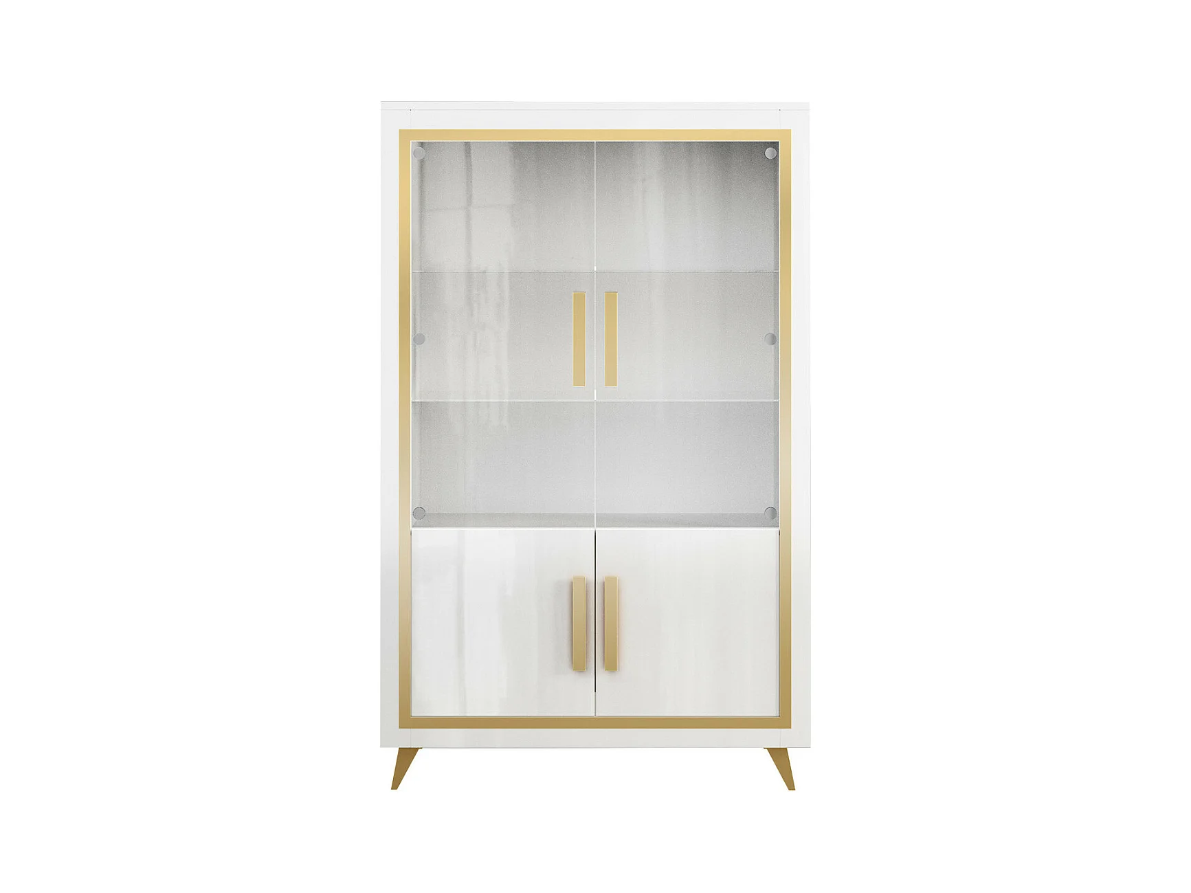 JEMMA - Ensemble Séjour Blanc Décor Doré Table 190cm + Vitrine avec Leds