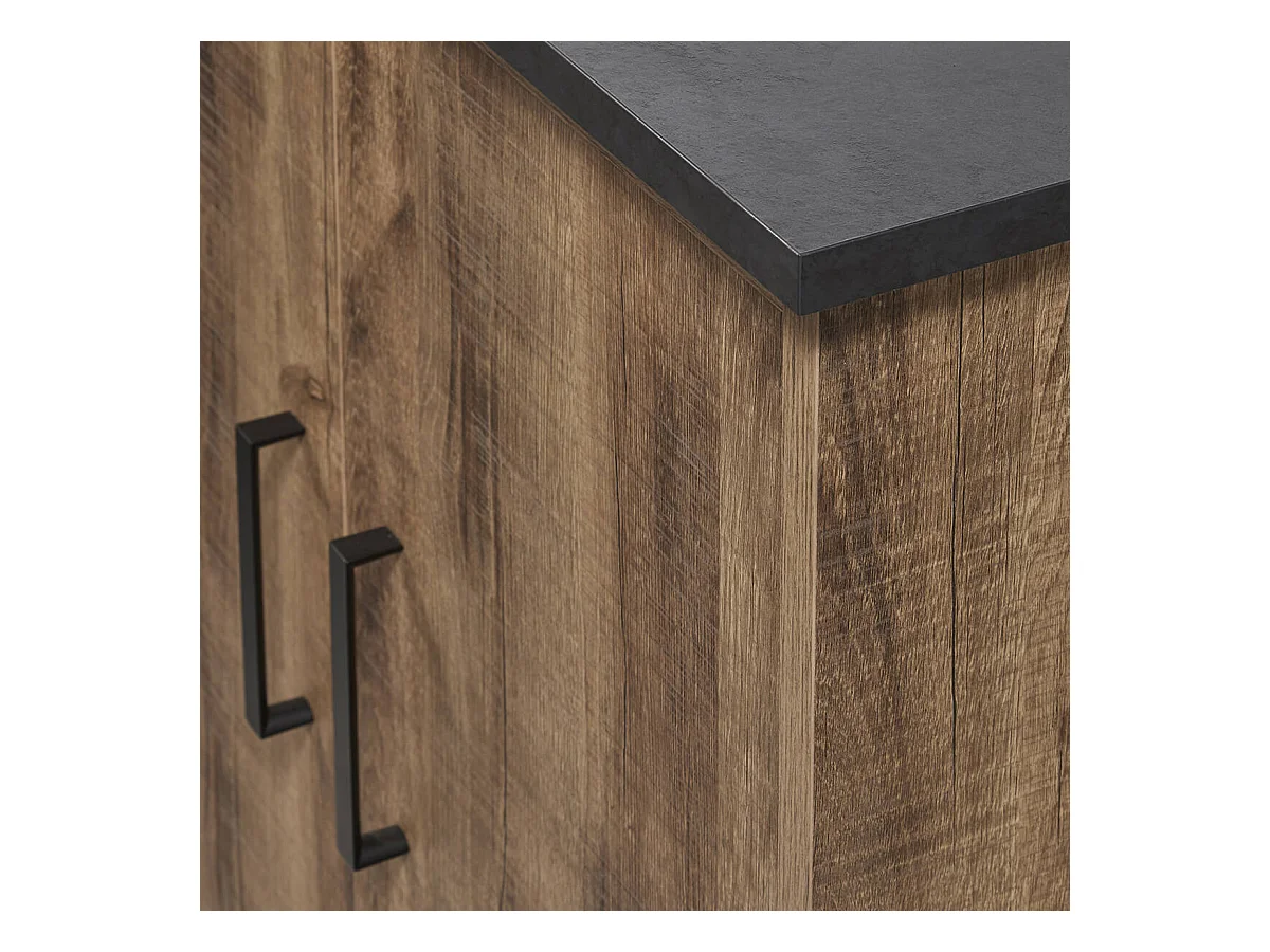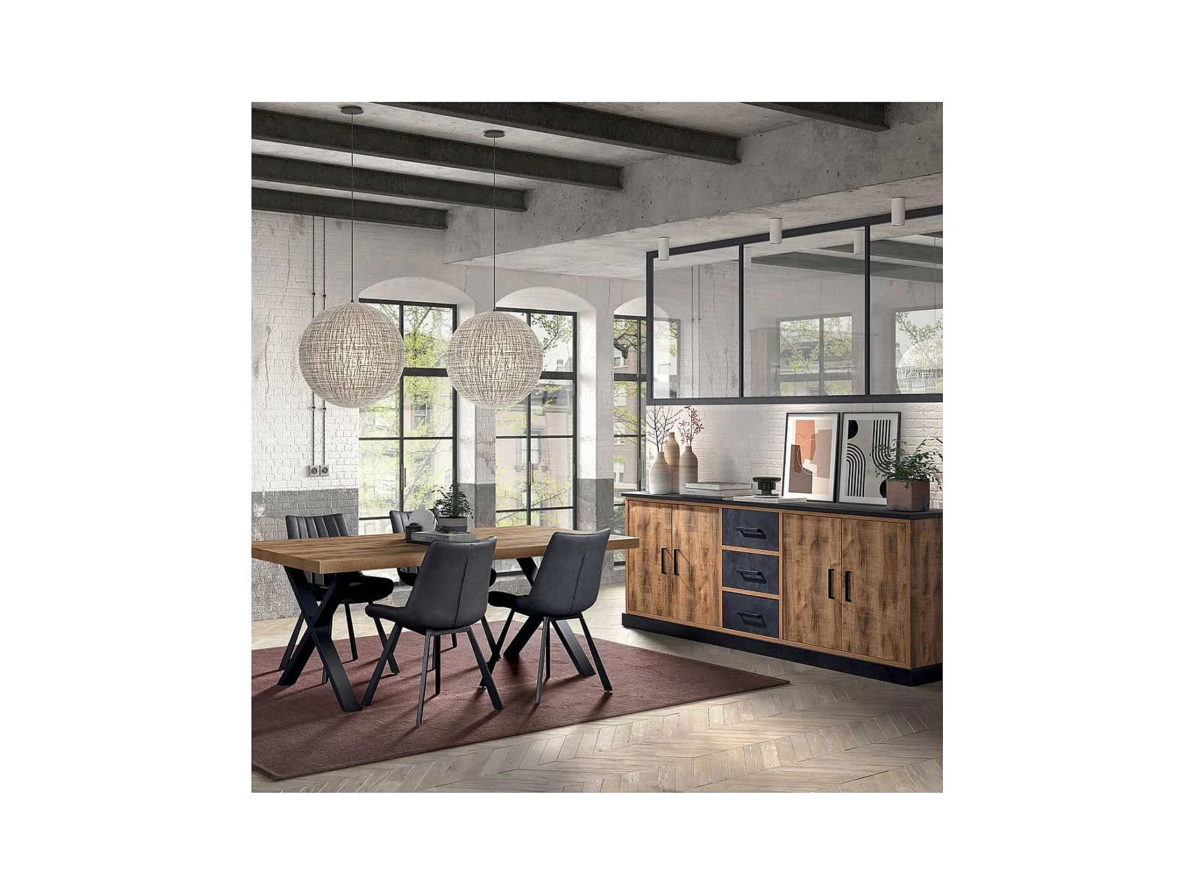 JENNA - Buffet 4 Portes 3 Tiroirs Aspect Bois et Métal Noir