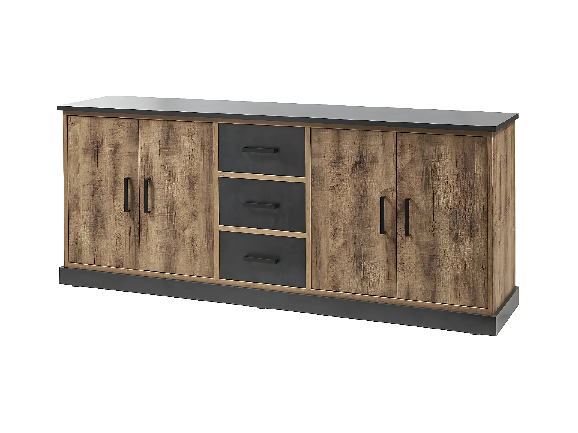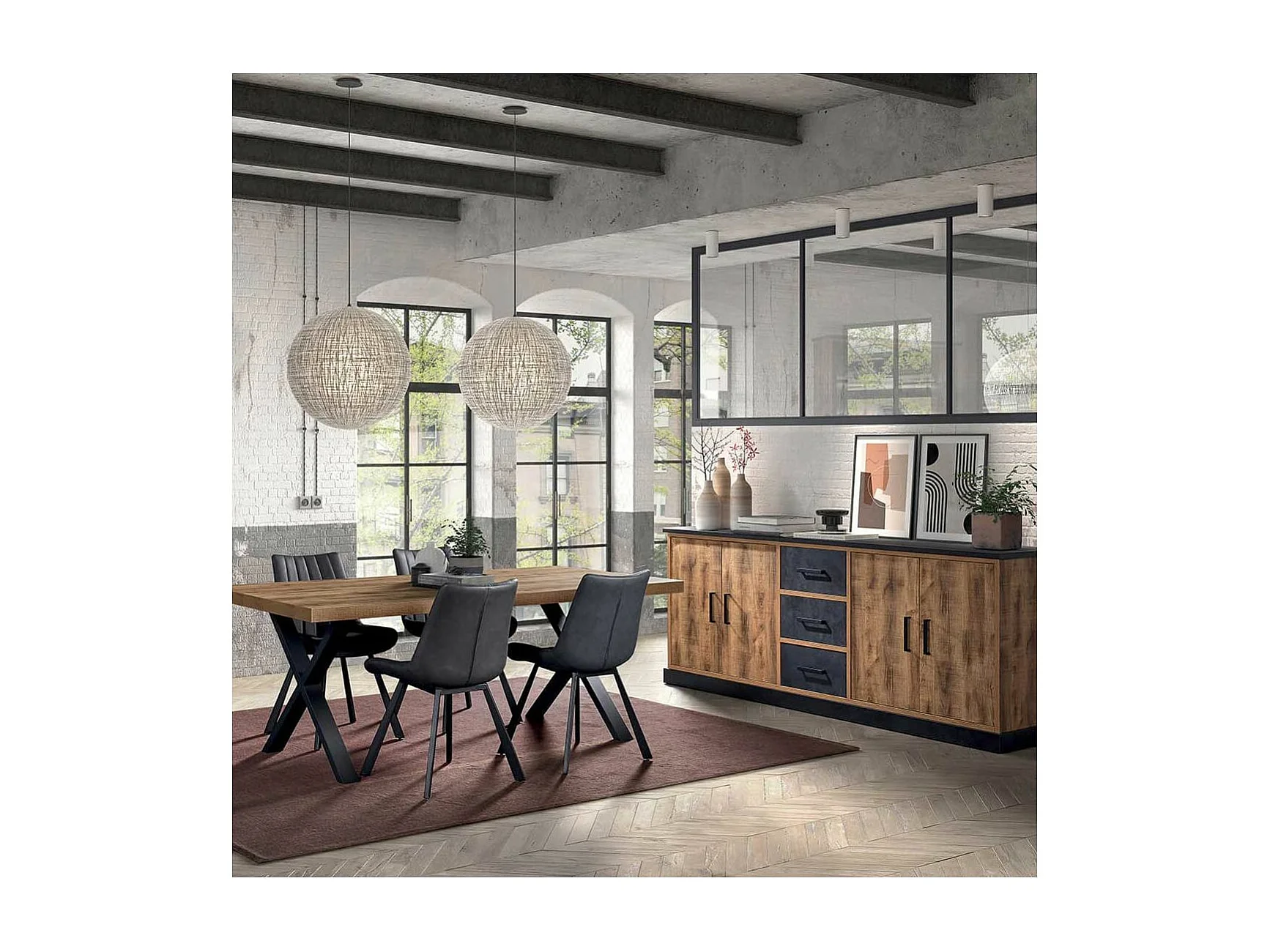 JENNA - Ensemble Table 230cm + Buffet 4 Portes Aspect Bois et Métal