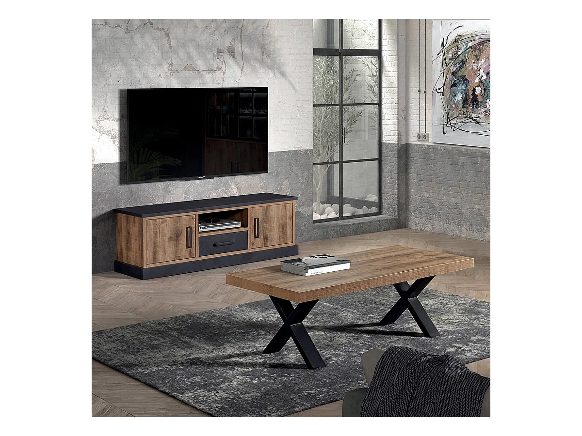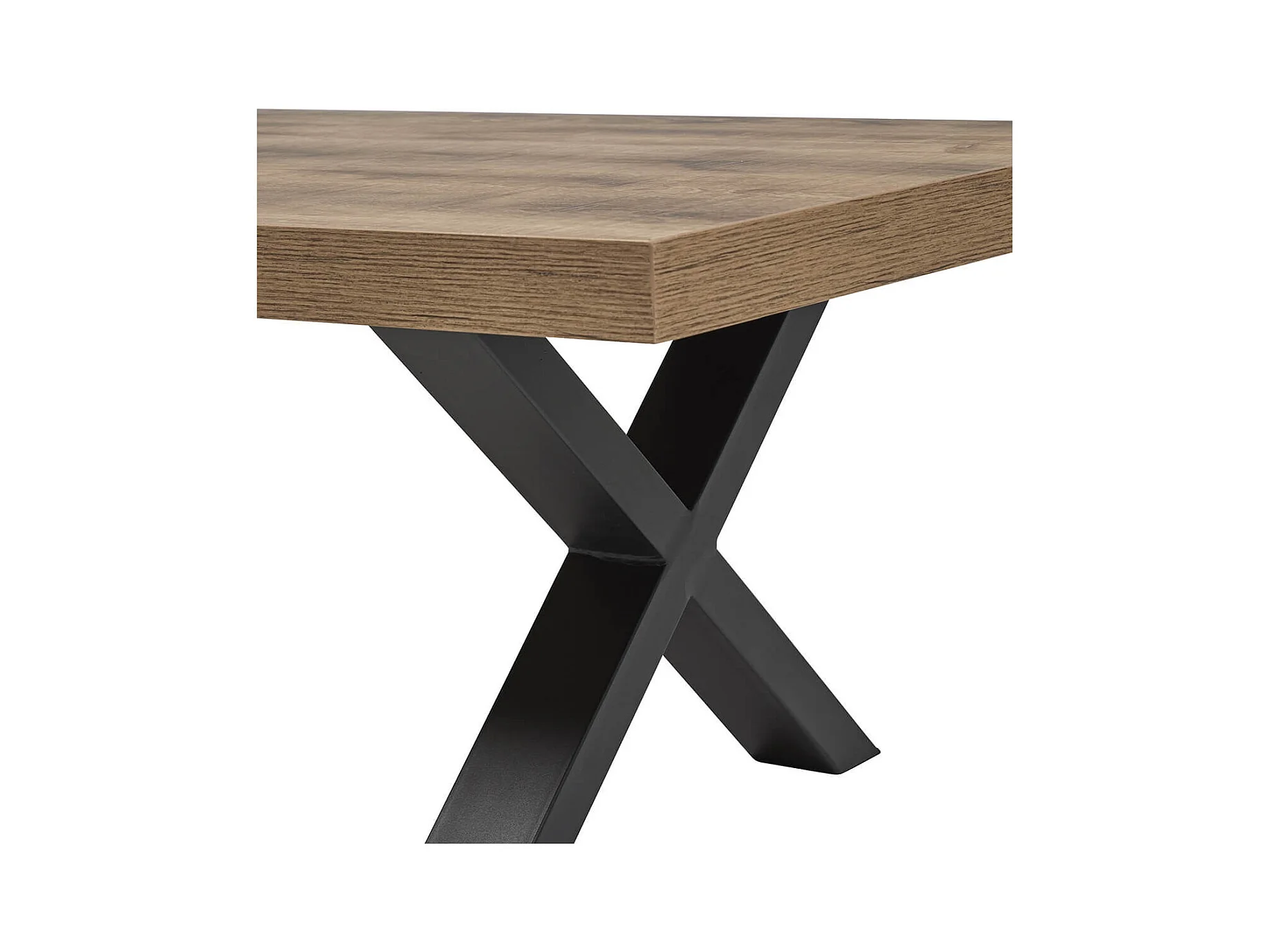 JENNA - Table Basse Aspect Bois Piètement X Métal Poudré Noir