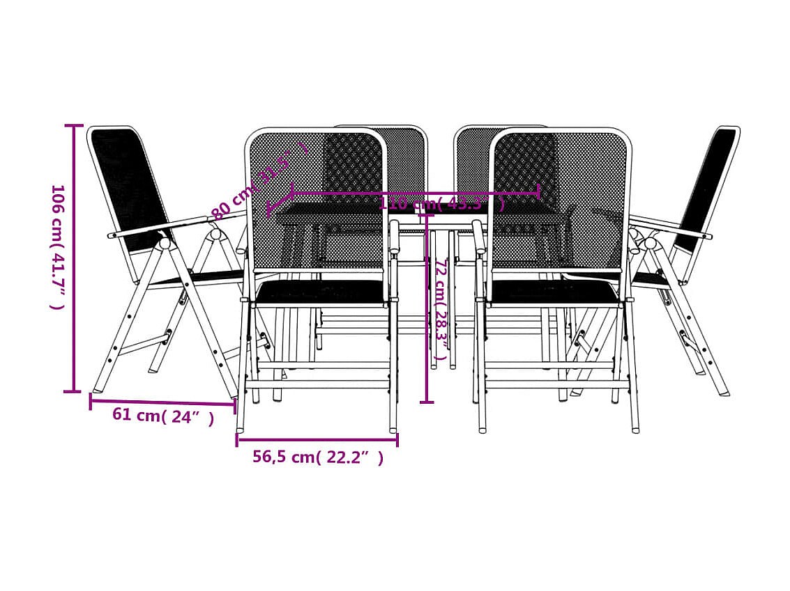 Jenneke Ensemble à manger de jardin 7 pcs anthracite métal maille