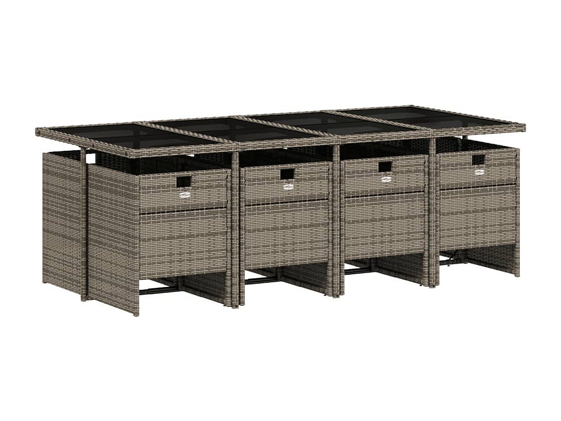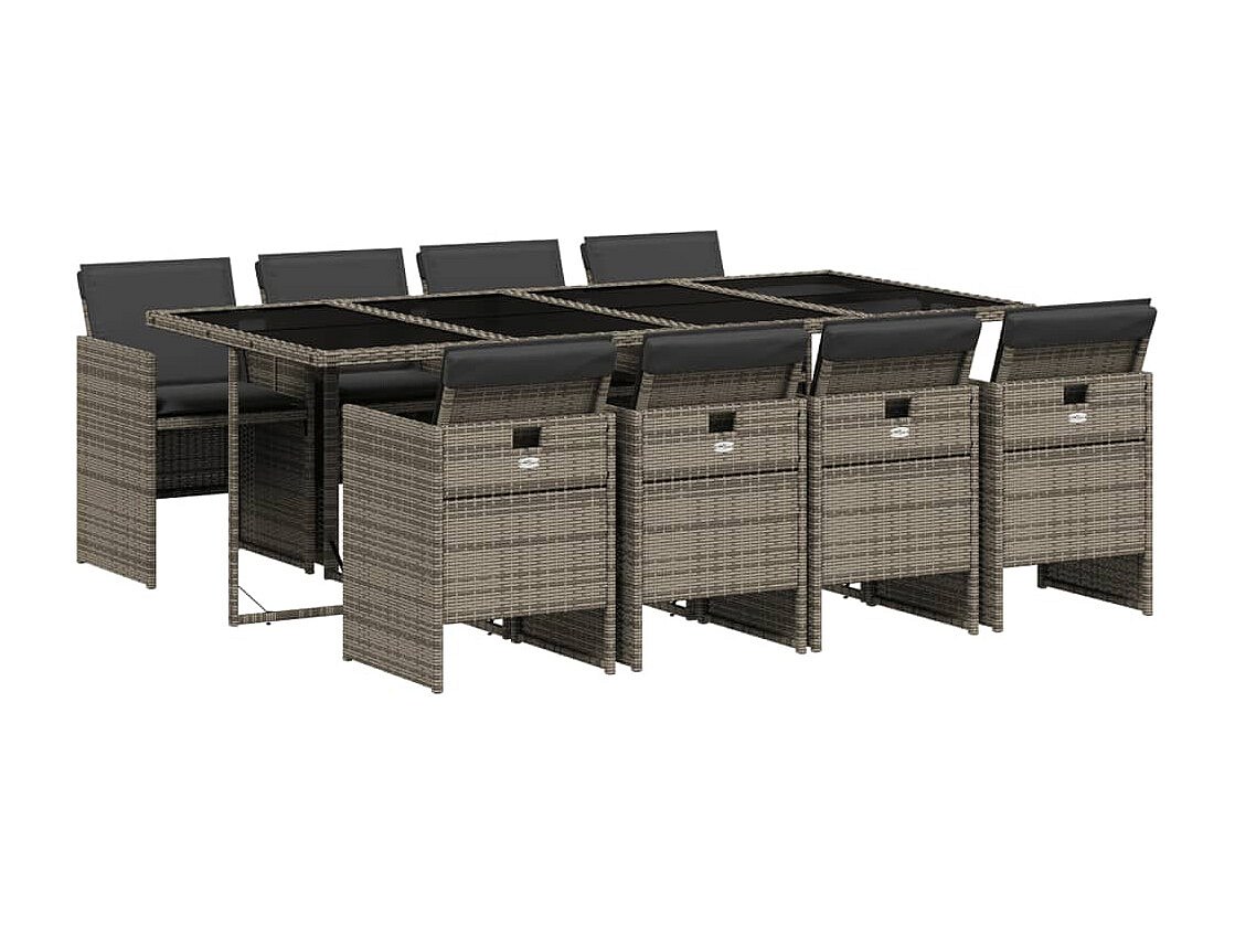 Jesse Ensemble à manger de jardin 9 pcs coussins gris résine tressée