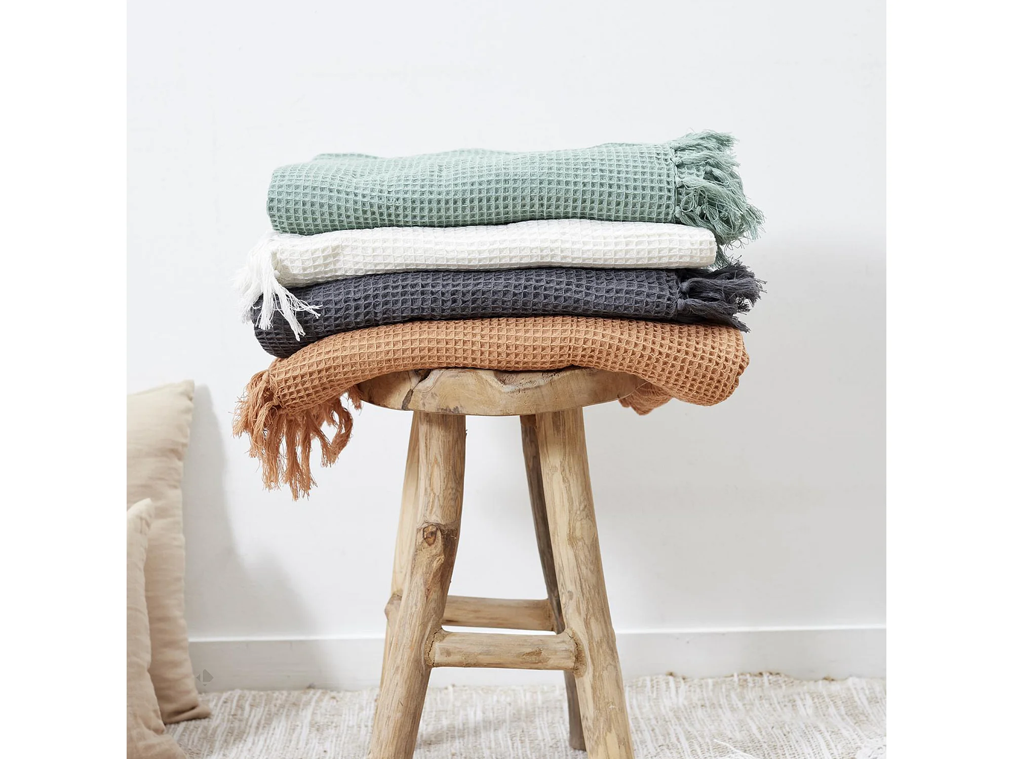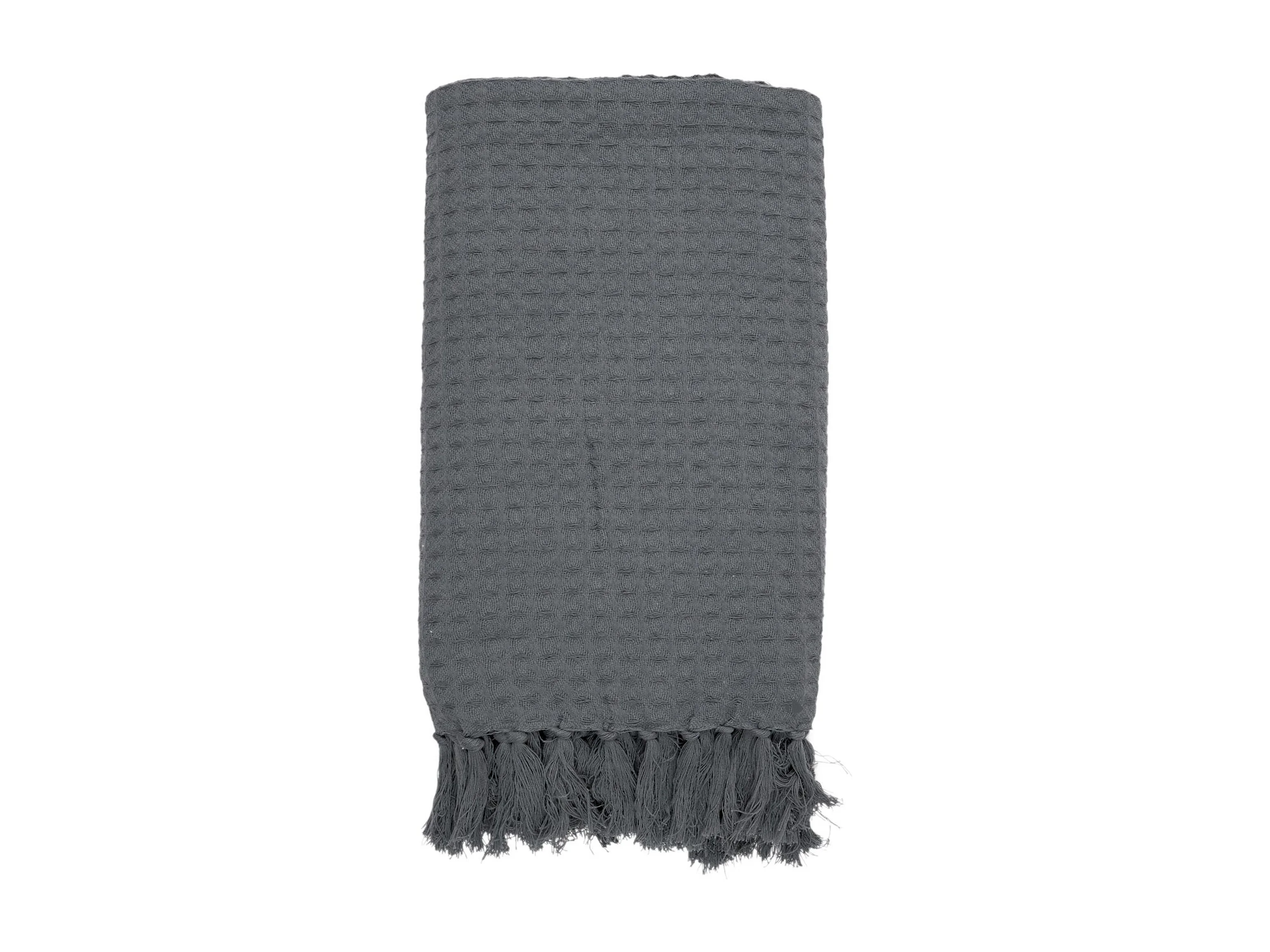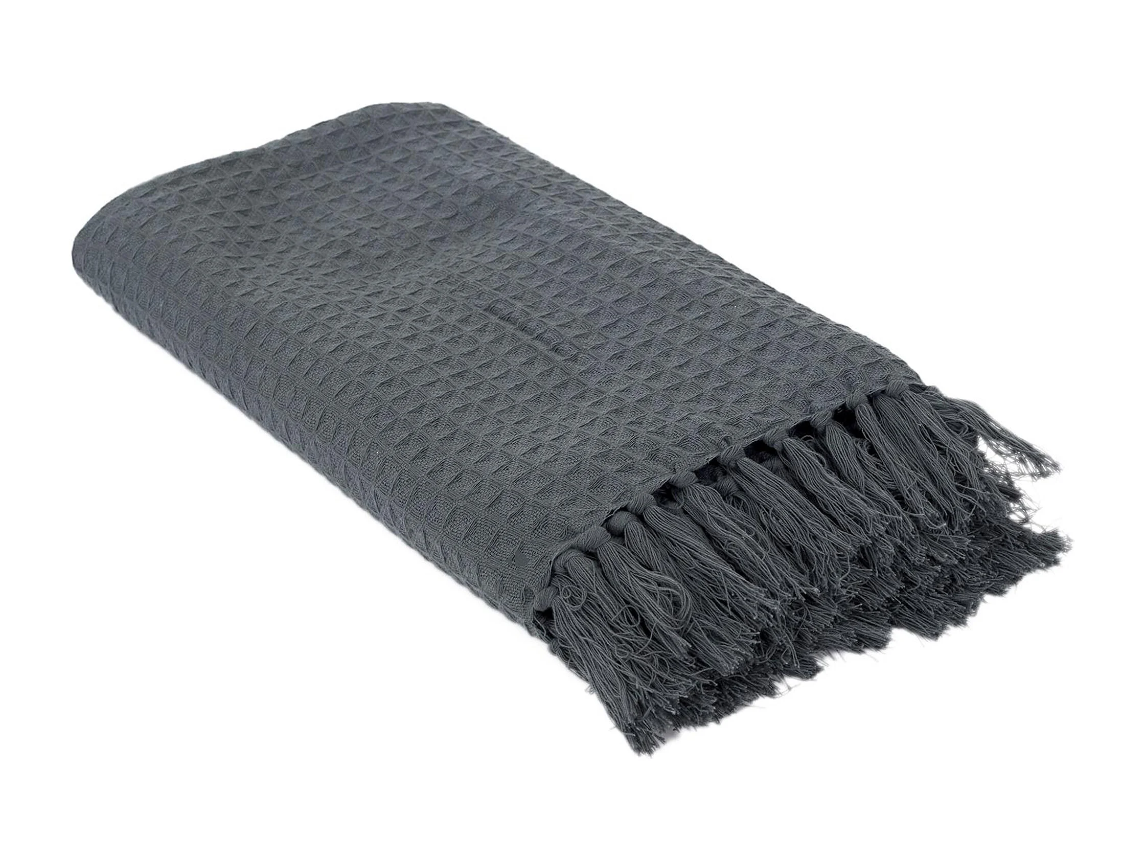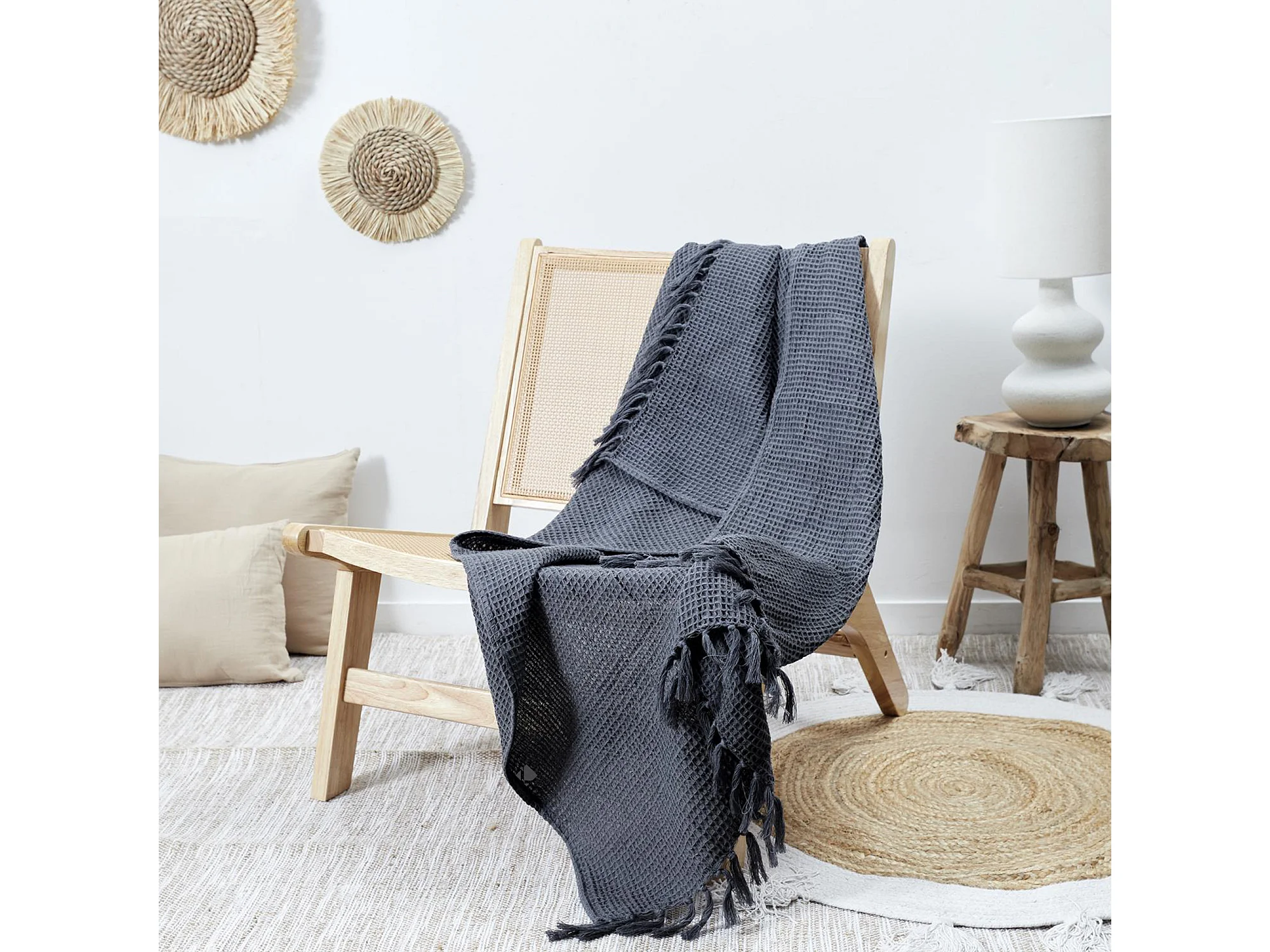 Jeté de canapé à franges gaufré 120x150 cm collection LAURY gris anthracite