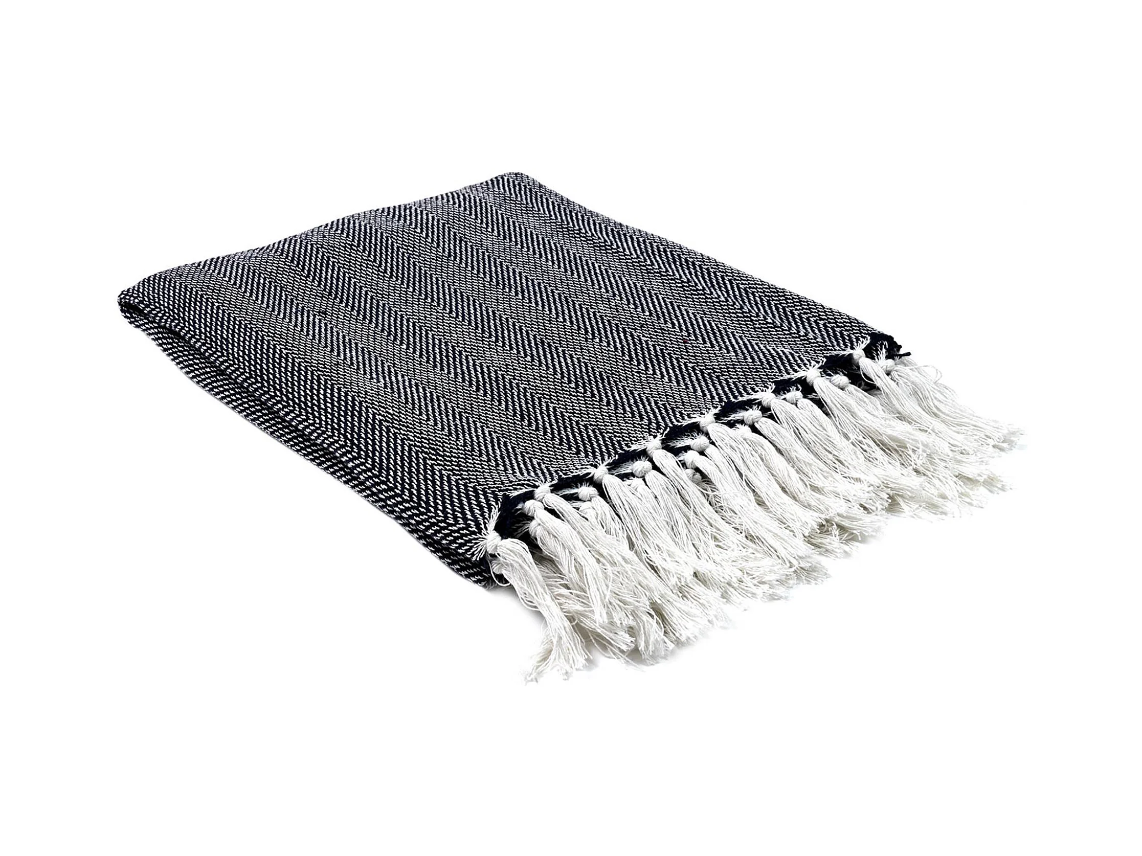 Plaid/jete Berbere A Rayure 120x150cm Beige, Noir