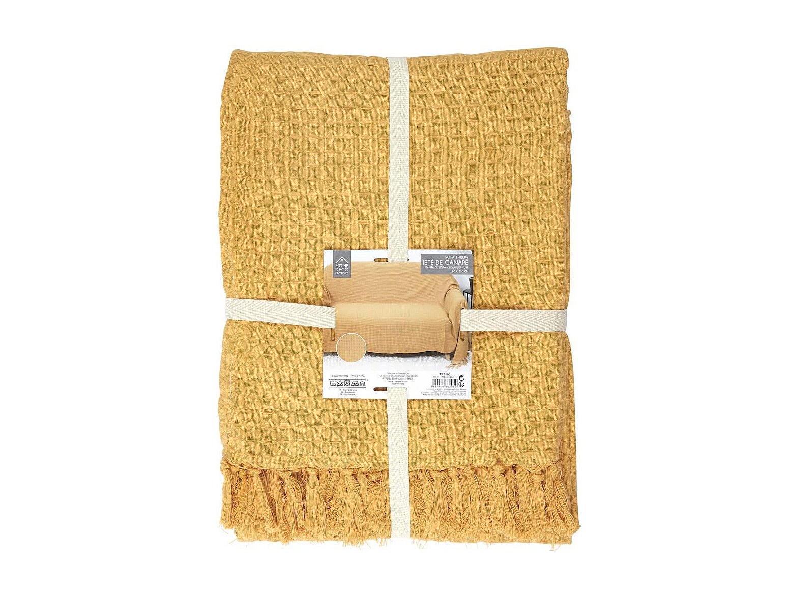 Jete De Canape Gaufre Jaune Ocre 130x160cm Jaune