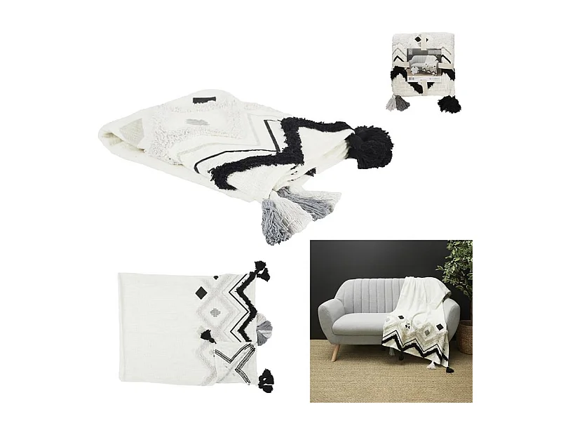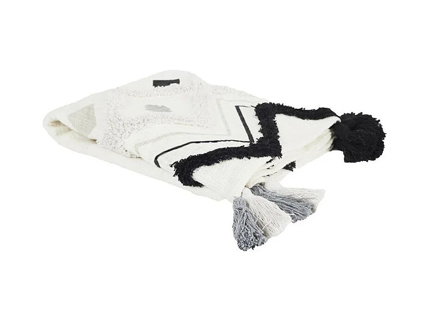 Jete De Canape Ethnique Tufte Noir 130x150cm