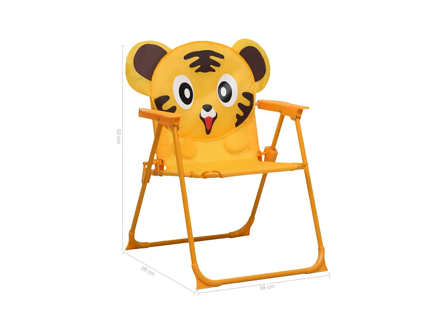 Ensemble salon de jardin enfant 4 pcs design tigre - table ronde + 2 chaises pliables + parasol - métal époxy oxford jaune