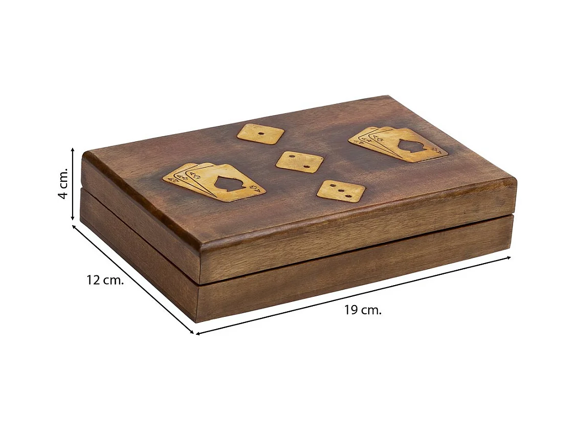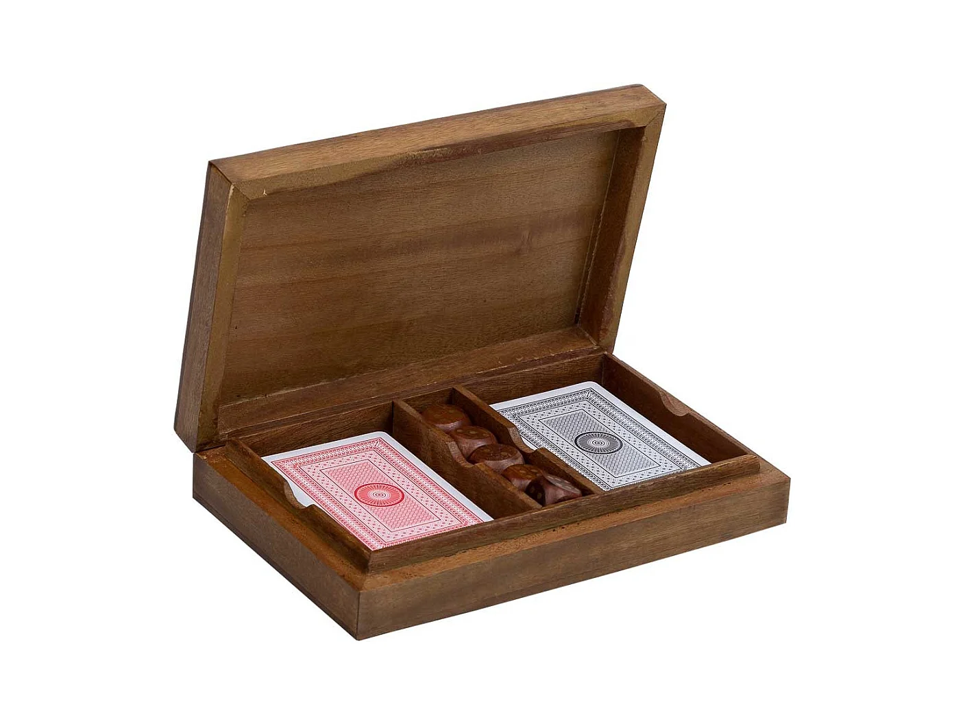 Jeu de cartes et dés avec boîte en bois 19x12x4h