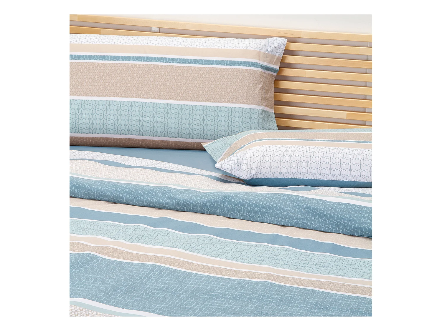 Jeu de housse de couette 50% coton imprimé rayures Bleu