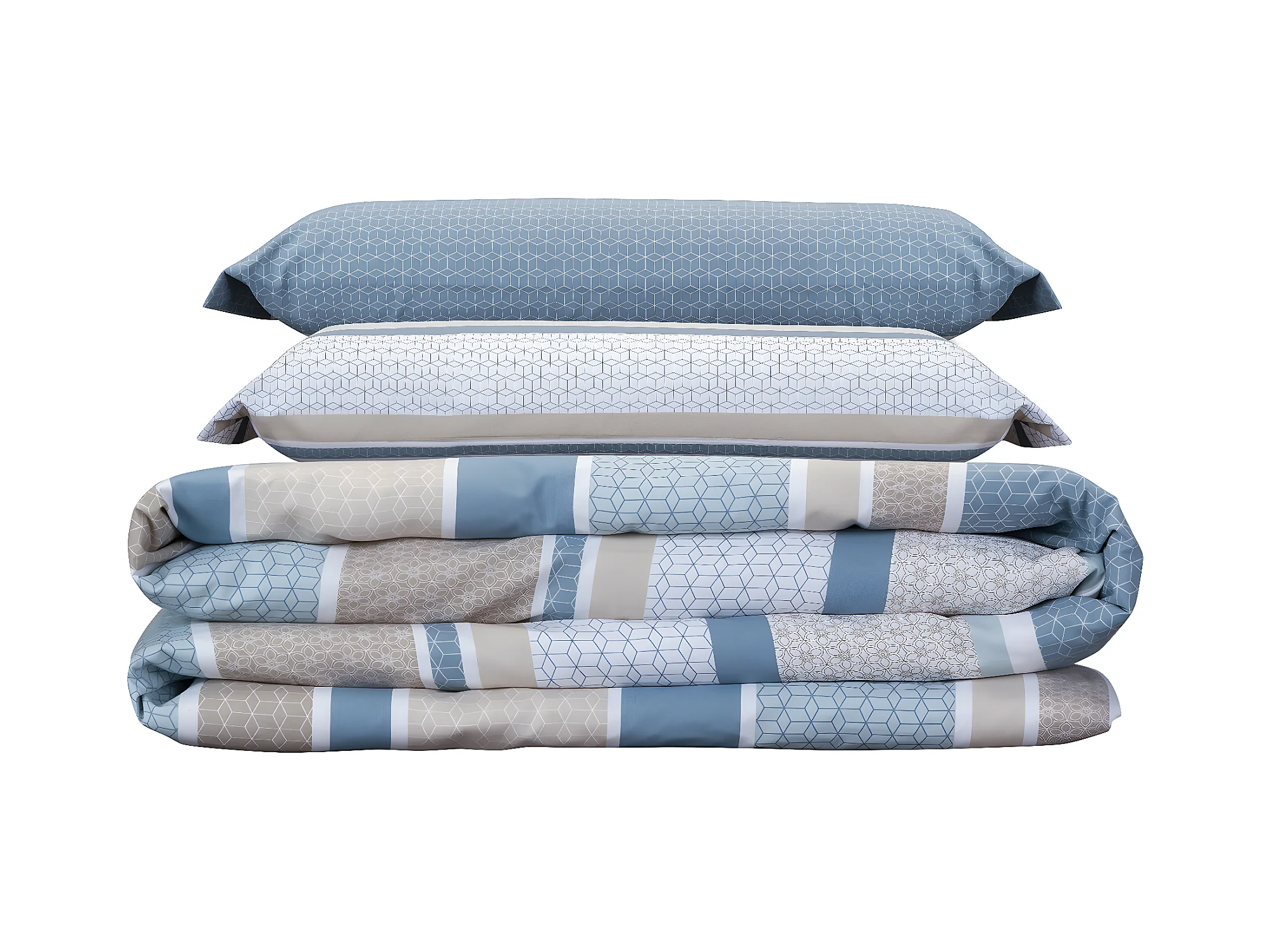 Jeu de housse de couette 50% coton imprimé rayures Bleu